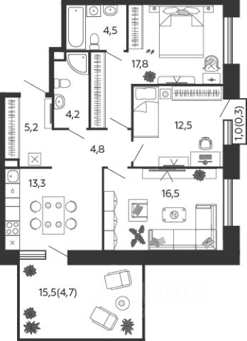 Квартира в рассрочку от девелопера. Первый взнос от 30%, максимальный срок рассрочки - 9 месяцев. Подробные расчёты можно получить в доме продаж. Прямая продажа от застройщика. В жилом квартале, расположенном в Даниловском районе Москвы, продаётся 3-комнатная квартира площадью 86.10 кв.м без отделки. Квартира расположена на 3 этаже 19-этажного дома, корпус Line 10, в жилом квартале бизнес-класса Foriver. Foriver - самый близкий к Кремлю квартал на своей пешеходной набережной Москвы-реки протяжённостью 1 км. Он расположен в новом удобном районе в центре, который постоянно улучшается. Расстояние до Кремля - 4 км, до Садового кольца - 1,7 км. Квартал продуман до мелочей. В нём обустроен двор с газонами и прогулочными аллеями, видовыми площадками для отдыха с деревянными шезлонгами и перголами. Резиденты будут наслаждаться эффектной панорамой Москвы-реки с шестиметровой возвышенности стилобата. Для юных жителей в Foriver создана собственная инфраструктура, в том числе пять развивающих площадок в закрытом дворе. Для поддержания здорового образа жизни на территории Foriver предусмотрены фитнес с 25-метровым бассейном и воркаут-зоны. Рядом расположен спортивный кластер им. Эдуарда Стрельцова с тремя футбольными полями и стадионом на 15 тыс. зрителей. В Foriver представлены готовые просторные квартиры по привлекательной цене: лоты с видами на Москву-реку; пентхаусы с каминами, террасами и потолками высотой до 6,8 м; варианты на втором этаже с террасами; таунхаусы с отдельными входами. О жителях и доме заботится Служба комфорта Smineх, которая предлагает сервис уровня 5-звёздочных отелей и сохраняет изначальный облик и концепцию дома. Девелопер проекта - Sminex, который создаёт самую комфортную и престижную среду для жизни и работы. Компания занимает лидирующую позицию на рынке элитной и премиальной недвижимости: площадь проектов в стадии строительства и проектирования превышает 900 тыс. кв. м. Стоимость квартиры - 62 640 000 Р. Дом сдан. Более подробную информацию по объекту уточняйте по телефону и в доме продаж.