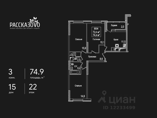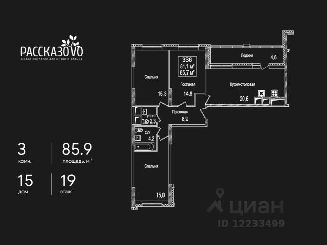 Продается 3-комнатная квартира в ЖК Рассказово на 12 этаже. Общая площадь квартиры составляет 77,4 кв.м. Квартира без отделки. Уникальность комплекса в его архитектуре все дома построены в стиле Москвы 30-х годов, создавая неповторимое ощущение присутствия романтики того времени. Роскошные входные группы, отделанные мрамором, с высотой потолков 4,5 м, белыми лепными карнизами и стойкой ресепшн с авторской отделкой создают атмосферу уюта, полностью отражая дух и воплощение уникальной архитектурной концепции 30-40 годов, являясь ее логическим продолжением. Преимущество локации заключается в благоприятной экологической обстановке с трех сторон комплекс окружен Ульяновским лесопарком и отсутствием промышленных предприятий, обеспечивая жителей чистым воздухом. До ближайшей станции метро "Рассказовка" всего 850 метров, а до центра можно доехать за 30 минут. Проект предполагает комплексное освоение территории, создание комфортной жилой застройки с развитой качественной инфраструктурой: - большое количество парковочных мест предусмотрены как закрытые подземные паркинги, так и крытые наземные парковки с дополнительно выделенными открытыми парковочными местами возле домов; - круглосуточно охраняемая территория, закрытая от посторонних для безопасности каждого жителя; - двор-парк без машин, где можно не переживать за играющих детей; - социальные объекты: своя поликлиника, детские сады и школы; - здоровая среда: воркаут - площадки, обустроенные места для занятий спортом на свежем воздухе, живописные места для утренних пробежек, велосипедные маршруты любой сложности; - благоустроенная набережная лесного озера для тихих прогулок или семейного отдыха; - коммерческие объекты действующие магазины, кафе и салоны красоты. Узнайте больше о комплексе приезжайте на просмотр, записавшись по телефону. Менеджер вас встретит, угостит вкусным кофе, проведет по территории и покажет квартиру. Купить 3-комнатную квартиру в готовой новостройке в поселении Внуковское в Москве.