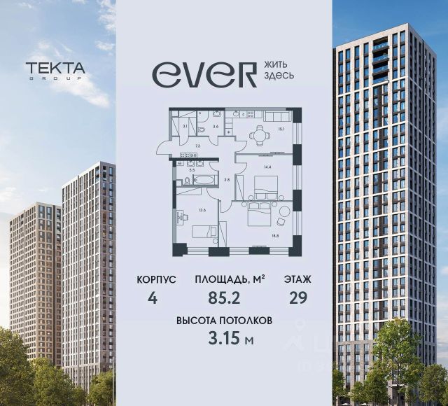 Рассрочка 0% с платежом от 120 000 ₽ в месяц. 3-комн. квартира в ЖК "Ever" на 34 этаже в 34 этажном здании Корпус 4. Общая площадь: 66.7 кв.м., жилая: 48.1 кв.м. Высота потолков 3.85 м. Top Floor — это пространство, которое сочетает в себе уникальный комфорт и элегантность. Увеличенная высота потолков создает ощущение простора и свободы, позволяя свету беспрепятственно заполнять каждый уголок. Здесь вы можете наслаждаться завораживающими панорамными видами на Сити, здание МГУ и Воронцовский парк, которые открываются из больших окон. Каждое утро вы встречаете, глядя на величественные силуэты, которые становятся частью вашего повседневного вдохновения. Город оживает перед вами, и каждый момент наполняется новыми впечатлениями. Утренние лучи солнца отражаются на стеклах, а вечерние огни создают атмосферу магии и уюта. Top Floor — это не просто место для жизни, это возможность наслаждаться атмосферой мегаполиса, оставаясь в уединении. Широкие пространства позволяют вам организовать интерьер по своему вкусу, а высокие потолки придают помещению особую элегантность. Вы можете создавать здесь уютную атмосферу для встреч с друзьями или просто наслаждаться уединением, наблюдая за жизнью города. Это место, где каждый день наполняется новыми красками и возможностями. Top Floor — ваш личный уголок, где царит гармония и комфорт, а виды на Москву становятся фоном для вашей жизни. Жилой комплекс EVER — это гармоничное сочетание динамики мегаполиса и умиротворенности природы. Всего семь минут неспешной прогулки отделяют вас от станции метро ""Калужская"", обеспечивая быстрый доступ ко всем преимуществам жизни в Москве. Вернувшись домой, вы попадаете в атмосферу спокойствия и комфорта. Продуманная инфраструктура комплекса включает в себя не только уютные квартиры, но и удобный подземный паркинг, избавляющий вас от хлопот с поиском места для парковки, а также индивидуальные кладовые помещения, где можно хранить все необходимое. В EVER вы найдете идеальное сочетание комфорта и удобства, позволяющее наслаждаться всеми преимуществами жизни в столице, не забывая о важности спокойствия и близости к природе. Купить 3-комнатную квартиру в готовой новостройке в округе ЮЗАО в Москве.