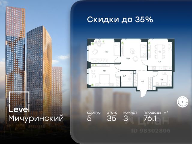 Этаж: 15, комнатность: 3 Площадь: 72 кв.м. Продаются апартаменты в многофункциональном комплексе бизнес-класса West Tower в ЗАО. 3 - комнатные апартаменты в West Tower это идеальные апартаменты для индивидуальности. Простор открытой планировки, в сочетании с инфраструктурой комплекса и отличной экологией вокруг дают отличную основу для покорения вершин. Здесь только самое необходимое. Эти апартаменты больше других подобных подходят для зонирования. Можно легко отделить хоум офис от кухни, а пространство для приема гостей от зоны отдыха. West Tower — апартаменты с премиальным сервисом на Аминьевском шоссе. Развитая инфраструктура и хорошая транспортная доступность. Рядом три станции метро: Аминьевская, Давыдково и Мичуринский проспект. У подножия коплекса находится Природный заказника Долина реки Сетунь, который дополнен собственным парком на крыше. Архитектура Строгий, харизматичный стиль проекта West Tower отражает в себе концепцию рационального проектирования и прагматичного подхода. Здесь все продумано до мельчайших деталей. Инфраструктура в доме Торговая галерея Kvartal West расположилась на первых этажах комплекса. Более 150 бутиков, кафе и рестораны, игровые центры, кинотеатр Синема Стар и премиальный фитнес-клуб World Class с бассейном. Комфорт и безопасность Премиальный консьерж-сервис 24/7, круглосуточная охрана, видеонаблюдение, система СКУД, закрытый охраняемый паркинг и эксклюзивное мобильное приложение для решения бытовых вопросов резидентов.