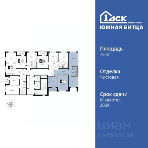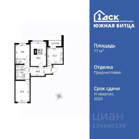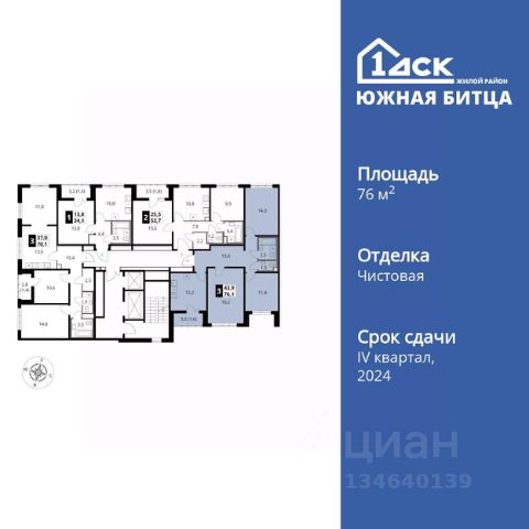 Продаётся 3-к квартира номер 112 общей площадью 75.3 кв.м. на 6-м этаже 24 этажного здания. Отделка Whitebox. Цена с учётом скидки.