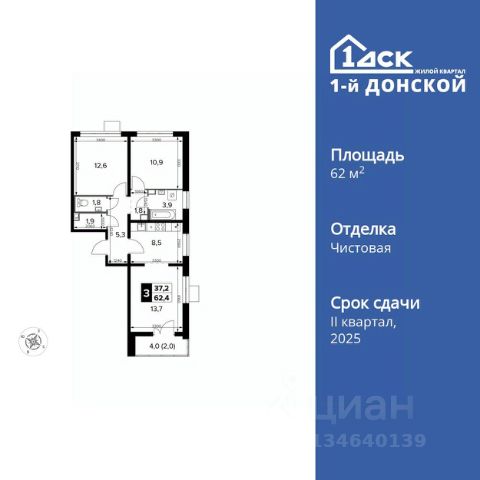 Прямая продажа от застройщика! Жилой Комплекс класса Комфорт Плюс. Продаётся 3-к квартира номер 23 общей площадью 62.4 кв.м. на 5-м этаже 24 этажного дома. Чистовая отделка. Цена с учётом скидки! Особенности квартиры: - МЦД-5 в пешей доступности - Квартал с собственной набережной - Свои 2 детских сада и школа - Просторная спальня, в которой можно разместить большую кровать. - Угловая планировка - больше пространства для ваших идей. - Окно в ванной - натуральное освещение для уюта и комфорта. - Раздельный санузел - больше удобства для всех членов семьи. - Евроформат - просторное и удобное жилье с отличной планировкой. - Просторная мягкая зона - комфорт и уют для отдыха всей семьи. - Кухня-гостиная - идеальное пространство для встреч с близкими. - Возможность добавить спальное место - дополнительный комфорт для гостей. - Гардеробная - удобство для хранения и организации вещей. - Ниша под шкаф - компактное и удобное место для вещей. - Просторная лоджия - идеальное место для уютных вечеров. Информация о комплексе: Комплекс 1-й Донской расположен в 7 км от МКАД по трассе М-4 Дон. В нем сочетаются все плюсы комфортной городской среды и природного окружения. В проекте достаточно большой процент квартир, выходящих на 2-3 стороны света. Секции-маяки формируют у зданий визуальную L-форму, что придает застройке структуру и ритмику объемов. На ощущение динамики работает и разная этажность зданий. Теплая цветовая палитра фасадов отражает природу Дона. Вечерами дома преображаются благодаря архитектурной подсветке, выгодно выделяясь на городском фоне. Природа оказывает положительное влияние на человека на всех уровнях восприятия: через зрение, запахи, звуки, тактильные ощущения. Неподалеку от ЖК Первый Донской: Ермолинский парк, Видновский лесопарк, Жуковский парк Транспортная доступность: Комплекс удобно расположен в 7 км от МКАД по трассе М-4 Дон (через Видное). Расстояние до Каширского шоссе составляет 12 км. Добраться до метро и центра Москвы позволяет развитая сеть маршрутов общественного наземного транспорта. Действующая ж/д станция Калинина Павелецкого направления в 15-17 минутах ходьбы (МЦД-5 в 2025-2026 гг). Внутренняя инфраструктура: Проект 1-й Донской соседствует с бурно развивающимся районом, основная инфраструктура которого уже сложилась. В строительстве современных жилых комплексов в округе есть свои плюсы: здесь формируется продуманная и комфортная городская среда. Что касается внутренней инфраструктуры, на территории квартала будут расположены собственные муниципальные 2 детских садика и школа, которые помогут совместить приятное с полезным. Территория комплекса пронизана целой сетью живописных пешеходных маршрутов, позволяющих попасть в любой уголок района. Основные пути, как водится, "торговые". Они проходят вдоль магазинов, кафе и других представителей коммерции и отделяются от проезжей части зеленой "фито" - стеной. Среди крупных социальных объектов предусмотрены своя поликлиника и торговый центр с
