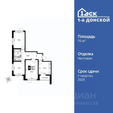Прямая продажа от застройщика! Жилой Комплекс класса Комфорт Плюс. Продаётся 3-к квартира номер 153 общей площадью 76.1 кв.м. на 19-м этаже 21 этажного дома. Чистовая отделка. Цена с учётом скидки! Особенности квартиры: - МЦД-5 в пешей доступности - Квартал с собственной набережной - Свои 2 детских сада и школа - Просторная спальня, в которой можно разместить большую кровать. - Гостевой санузел - комфорт и удобство для ваших гостей. - Просторная мягкая зона - комфорт и уют для отдыха всей семьи. - Возможность добавить спальное место - дополнительный комфорт для гостей. - Ниша под шкаф - компактное и удобное место для вещей. - Лоджия - уютное место для отдыха и тишины. Информация о комплексе: Комплекс 1-й Донской расположен в 7 км от МКАД по трассе М-4 Дон. В нем сочетаются все плюсы комфортной городской среды и природного окружения. В проекте достаточно большой процент квартир, выходящих на 2-3 стороны света. Секции-маяки формируют у зданий визуальную L-форму, что придает застройке структуру и ритмику объемов. На ощущение динамики работает и разная этажность зданий. Теплая цветовая палитра фасадов отражает природу Дона. Вечерами дома преображаются благодаря архитектурной подсветке, выгодно выделяясь на городском фоне. Природа оказывает положительное влияние на человека на всех уровнях восприятия: через зрение, запахи, звуки, тактильные ощущения. Неподалеку от ЖК Первый Донской: Ермолинский парк, Видновский лесопарк, Жуковский парк Транспортная доступность: Комплекс удобно расположен в 7 км от МКАД по трассе М-4 Дон (через Видное). Расстояние до Каширского шоссе составляет 12 км. Добраться до метро и центра Москвы позволяет развитая сеть маршрутов общественного наземного транспорта. Действующая ж/д станция Калинина Павелецкого направления в 15-17 минутах ходьбы (МЦД-5 в 2025-2026 гг). Внутренняя инфраструктура: Проект 1-й Донской соседствует с бурно развивающимся районом, основная инфраструктура которого уже сложилась. В строительстве современных жилых комплексов в округе есть свои плюсы: здесь формируется продуманная и комфортная городская среда. Что касается внутренней инфраструктуры, на территории квартала будут расположены собственные муниципальные 2 детских садика и школа, которые помогут совместить приятное с полезным. Территория комплекса пронизана целой сетью живописных пешеходных маршрутов, позволяющих попасть в любой уголок района. Основные пути, как водится, "торговые". Они проходят вдоль магазинов, кафе и других представителей коммерции и отделяются от проезжей части зеленой "фито" - стеной. Среди крупных социальных объектов предусмотрены своя поликлиника и торговый центр с примыкающей площадью для общественных мероприятий. Уют начинается с продуманного подъезда. Сквозные подъезды наполнены светом благодаря сплошному остеклению. Вход в них есть и с улицы, и со двора.