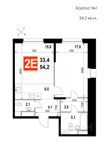Продаётся 2-комнатная квартира в строящемся доме (Корпус 1), срок сдачи: I-кв. 2026, общей площадью 54.2 кв.м., на 10 этаже. Многоквартирный жилой дом со встроенно-пристроенными нежилыми помещениями и автостоянкой