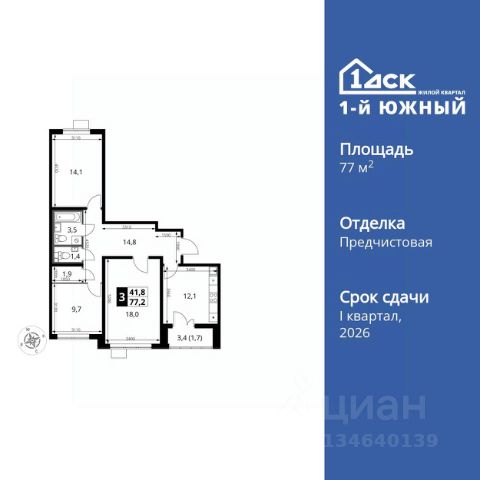 ТОЛЬКО 4 ДНЯ ДО 10.02 • Дополнительная скидка 10% • Ставка 10% по стандартной ипотеке для всех без наценок • Ставка 3,5% по семейной ипотеке Успейте купить выгодно! Прямая продажа от застройщика! Жилой Комплекс класса Комфорт Плюс. Продаётся 3-к квартира номер 141 общей площадью 79.2 кв.м. на 8-м этаже 24 этажного здания. Чистовая отделка. Особенности квартиры: - МЦД-5 в пешей доступности - Квартал с южным садом - Свои 3 детских сада и 2 большие школы - Мастер-зона с гардеробной. Просторное место для отдыха и удобного хранения вещей. - Угловая планировка - больше пространства для ваших идей. - Увеличенное количество окон - дополнительное освещение и свежий воздух. - Раздельный санузел - больше удобства для всех членов семьи. - Просторная кухня - место для семейных ужинов и кулинарных экспериментов. - Линейная кухня - функциональность и практичность в одном решении. - Гардеробная - удобство для хранения и организации вещей. - Ниша под шкаф - компактное и удобное место для вещей. - Просторная лоджия - идеальное место для уютных вечеров. Информация о комплексе: Одно из преимуществ проектов 1- ДСК большие застекленные лоджии. Другое преимущество честный евро-формат. Во всем проекте предусмотрена система Умный дом. В состав устанавливаемого пакета устройств входит: WiFi реле для управления группами потребителей, беспроводной кран перекрытия с эл. приводом, беспроводной сенсор протечки, Яндекс Станция Мини. Его расположение можно назвать удачным за счет транспортной доступности и близости к природным объектам. По соседству лес, а в каждом дворе плодовые деревья. Весной квартал окутывает бело-розовое облако: это цветут яблони, груши, сливы. К августу в воздух наполняется ароматом созревших плодов. Зимой среди покрытых инеем деревьев протянулась лыжня. Транспортная доступность: - Общественный транспорт: Действующая ж/д станция Булатниково (в перспективе будущая МДЦ D5) в пешей доступности, всего 10-12 минут. - Личный автотранспорт: Удобный выезд на трассу М4-Дон в сторону Москвы и области 850 м, до МКАД - 1 км Внутренняя инфраструктура: Красивые продуманные подъезды - еще одно преимущество проекта 1-й Южный. Вход в сквозные подъезды есть и с улицы, и со двора. Благодаря сплошному остеклению в них всегда светло и уютно. Подъезды расположены на уровне земли, поэтому и молодым родителям с коляской, и жильцам с ограниченными возможностями вход и выход неудобств не доставят. В помещении предусмотрено место под стойку ресепшен с выводом инженерных сетей. Если жильцы решат на общем собрании, что необходим охранник или консьерж, организовать для них рабочее место можно быстро и с минимальными затратами. В подъездах предусмотрены уборные для детей и взрослых. Колясочные в каждом подъезде позволяют поддерживать порядок и чистоту на этажах. На случай прогулки с четвероногим питомцем в непогоду в подъездах устроены лапомойки. Во дворах и на общественных территориях 1-ого Южного столько всего интересного для юных обитат