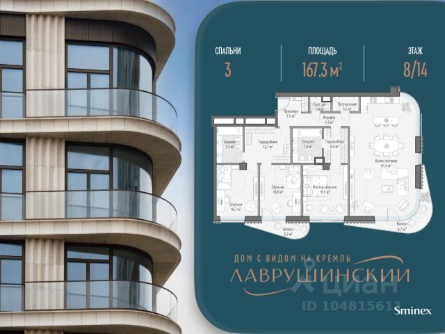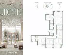 Квартира с 2 мастер-спальнями общей площадью 178,7 м2 расположена на 6-м этаже жилого дома "Никитский 6". Из окон гостиной открывается панорамный вид на тихие Нижний Кисловский и Калашный переулки, Центральный дом журналиста. Планировочное решение включает панорамную кухню-гостиную и 2 мастер-спальни с личной гардеробной и ванной комнатой, а также функциональные сервисные пространства. Во всех квартирах предусмотрена высококачественная авторская отделка с кухонной мебелью, бытовой техникой и полностью оборудованными ванными комнатами. В интерьере предложены природные оттенки и натуральные премиальные материалы: дерево, различные породы камня, элементы металла. Интеграция ультрасовременных инженерных систем с элементами управления smart home и multiroom. "Никитский 6" расположен в одном из культовых районов столицы — на Арбате, на пересечении Никитского бульвара и улицы Воздвиженка. В пешей доступности от дома находятся всемирно известные культурные достопримечательности, образовательные учреждения, зеленые бульвары для прогулок, модные рестораны и бутики Никитской улицы и всего пять минут до Александровского сада. Для дополнительного комфорта резидентов "Никитский 6" предусмотрена клубная инфраструктура: просторное комфортабельное лобби, зал для частных занятий йогой и пилатесом, библиотека и комната для переговоров. На трех подземных уровнях дома расположен просторный паркинг с увеличенными габаритами машино-мест, скоростными зарядками для электромобилей, кладовыми и сервисными помещениями для персонала.