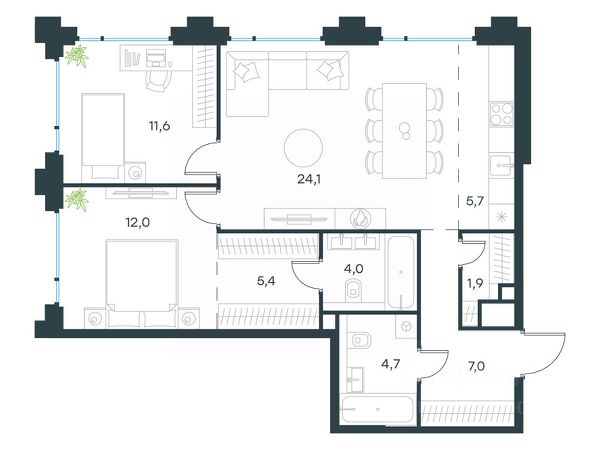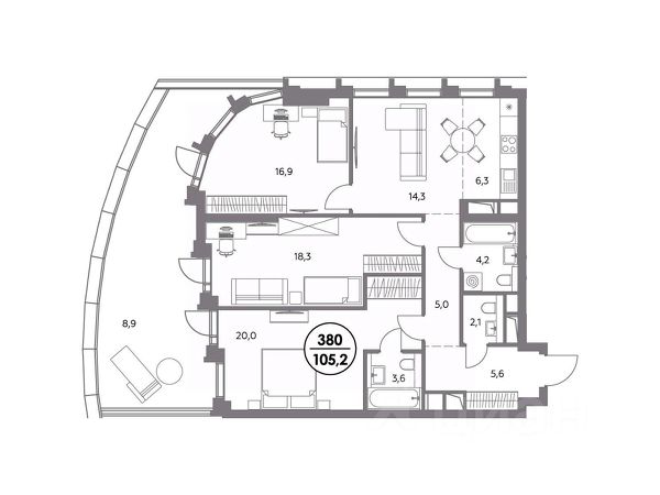 В премиум-квартале "Дом 56" на Бауманской напрямую от девелопера ГК "Галс-Девелопмент" представлена 3-комнатная квартира на 2 этаже общей площадью 105.20 м². Квартира предлагается без отделки, со свободной планировкой. Пространство позволяет воплотить дизайн - проект в соответствии с Вашими предпочтениями. "Дом 56" - расположен в Басманном районе на ул. Фридриха Энгельса, всего в 12-15 минутах пешком от станций метро "Бауманская" и "Электрозаводская". Рядом с премиум-кварталом находятся важные городские магистрали - ТТК, набережная реки Яузы и Бакунинская улица, переходящая в Спартаковскую и Маросейку. Архитектурный стиль "Дома 56" - параметрический минимализм. Футуристические фасады квартала с "эффектом закручивания" словно вращаются вокруг своей оси. Динамичный образ башен дополняет эффектное остекление - окна в пол будут в каждой квартире. "Дом 56" станет органичным продолжением современной научно-креативной среды Басманного района: - Развитое окружение - десятки различных точек притяжения; - Близость престижных вузов: МГТУ, МЭИ и Британская высшая школа дизайна; - Соседство с Технологической долиной и всем необходимым для запуска стартапа; - Набережные и парки для спорта и отдыха. "Дом 56" оснащён первоклассными инженерными системами. Входы на территорию, в здание и паркинг оборудованы системой контроля и управления доступом. С любого этажа в лобби и паркинг спускаются быстрые и бесшумные лифты премиального бренда. Во внутреннем приватном дворе будет создано пространство в бионическом стиле с лаунж-зонами, подвесными качелями, детскими плейхабами для разных возрастов, площадками для спорта и отдыха в окружении зелени. На двух подземных уровнях предусмотрен подземный паркинг и кладовые помещения.