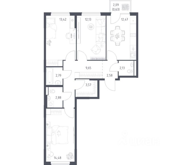 Квартира с кухней-гостиной и тремя спальнями в Квартале Герцена. Особенности планировки: балкон, второй санузел, гардеробная, окна на две стороны, постирочная, предчистовая отделка, французский балкон. Квартиру можно купить онлайн. В квартире выполнена отделка "под чистовую". Установлены окна с двойным стеклопакетом, радиаторы с терморегуляторами. На полу цементно-песчаная стяжка. В квартиры заведены кабели для интернета и ТВ. Входная сейф-дверь не требует замены. Организован поквартирный учёт энергоресурсов (водоснабжение, отопление, электричество). Квартал "Герцена" расположен в Бирюлёве Восточном — районе на юге Москвы. Дорога до ТТК займет всего полчаса на автомобиле, до станции метро и ж/д станции "Царицыно" — 13 минут, а до автовокзала "Южные ворота" — 20 минут. До автобусных остановок можно дойти пешком. В 2027-2028 году откроется новая станция метро "Лебедянская", дорога до неё займет всего 18 минут. Общая площадь "Квартала Герцена" составляет 27,3 га. Дома состоят из разноуровневых секций высотой от 6 до 55 этажей с видовыми террасами и балконами. На территории квартала будет построена поликлиника, детский сад на 350 мест и воспитательно-образовательный комплекс на 1075 мест, а также рестораны, клиники, магазины и салоны красоты. Объявление от застройщика. Ипотека, материнский капитал. Обмен — один из способов покупки. Обмен подойдёт, если вы хотите быстро поменять старую квартиру на новую. Получить ипотеку или рассрочку, а также обменять квартиру можно онлайн. Запишитесь на онлайн-презентацию по телефону или на сайте. квартиры в нашей базе: ГРЦ01.2-Ж4.14.1.