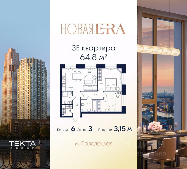 Рассрочка 0% с платежом от 250 000 ₽ в месяц. 3-комн. квартира в ЖК "Era" на 2 этаже в 52 этажном здании Корпус 5. Общая площадь: 56.8 кв.м., жилая: 35.40 кв.м. Высота потолков 3.15 м. Квартал ERA — это не только архитектурный шедевр, но и комфортное место для жизни. Благоустроенная территория включает английский сад, зоны отдыха, цветущие поляны и современные детские площадки. На первых этажах зданий предусмотрены коммерческие помещения — магазины, кафе, и сервисы, делающие жизнь здесь удобной и насыщенной. ERA предлагает квартиры с разнообразными планировками и вариантами отделки — от White Box до полностью свободного пространства для индивидуального дизайна. Удобное расположение в Даниловском районе Москвы обеспечивает быстрый доступ к центру города, а продуманная инфраструктура и уникальный стиль делают квартал отличным выбором для жизни и инвестиций.
