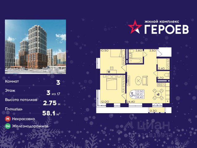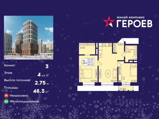 Продаётся 3-комнатная квартира в формате евро 46.50 кв. м. в жилом комплексе "Героев" в Балашихе, Железнодорожный. Квартира расположена на 13 этаже 407 корпуса. В наличии квартиры с отделкой. Всего 40 минут до центра Москвы. При покупке квартиры в сданном доме ключи выдаются сразу! Жилой квартал "Героев" - это уютный проект для семей с детьми. В квартале созданы все условия для досуга всех возрастов: игровые и спортивные площадки, места для отдыха и прогулочные зоны. За 15 минут можно дойти от дома до Ольгинского лесопарка, популярного места для отдыха на свежем воздухе. На территории жилого комплекса уже открыт детский сад на 250 мест и началось строительство еще одного - для 220 малышей, а также школы для 1320 учеников. Рядом работают магазины, кафе, супермаркеты, пункты выдачи. Преимущества: • В уютных светлых квартирах с просторными кухнями-гостиными удобно встречать гостей и проводить время наедине друг с другом. • Благодаря увеличенному остеклению в комнатах много света. • Квартиры продаются с отделкой, можно заселяться сразу после получения ключей.