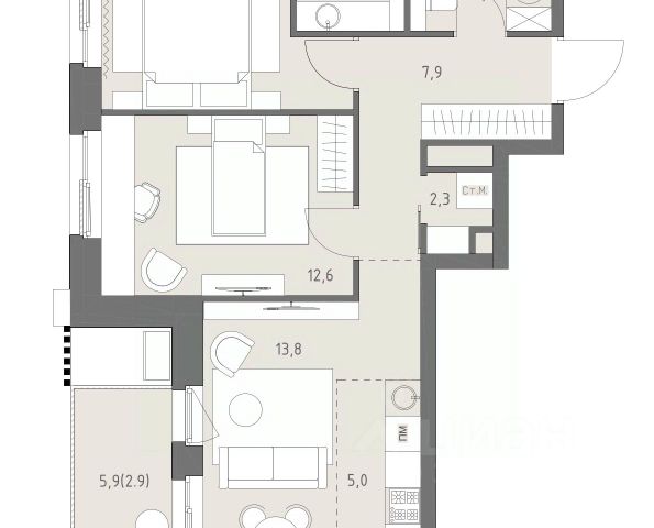 Старт продаж новой очереди! Продаётся 3-комнатная квартира общей площадью 84.73 м² без отделки в ЖК Веер на 15-м этаже 25 этажного дома. Веер.2 — вторая очередь футуристичного квартала бизнес-класса Веер. Это новая экосистема в престижном Западном округе Москвы, поражающая масштабностью внутренней инфраструктуры. ЖК находится всего в 5 минутах от Кутузовского проспекта и в 15 минутах от Сколково. Ансамбль из четырех стеклянных башен с доминантой в 237 метров разработан по принципу современного урбанизма и выражен в лаконичных объемах — параллелепипедах со сглаженными углами, которые придают зданиям утонченный вид. Расположение и транспортная доступность: • Образовательный комплекс в составе топовой школы, состоящий из двух зданий: основное на 1500 школьных и 450 дошкольных мест, отдельное здание детского сада на 300 мест. • Парк "Долина реки Сетунь" площадью более 700 гектаров • Рядом МГУ, МГИМО, РАНХиГС и Академия ФСБ • 15 минут по Кутузовскому проспекту до ужина в центре с видом на Москву-реку • 18 минут пешком до м. "Давыдково" • Открытие новых станций метро в шаговой доступности в будущем Инфраструктура: Двор в Веер.2 — это ассиметричные холмы, каменные "лабиринты", зеленые ковры и хвойные островки с единой живой экосистемой. Здесь есть все: • Павильон умиротворения Место отдыха под навесом в спокойной части двора, окруженное деревьями. • Активная тропа Тактильная дорога из камней разного диаметра для расслабляющих прогулок. • Бизнес-гарден Оборудованное пространство для работы на свежем воздухе со столом и встроенными розетками. • Детская площадка Двухуровневая площадка "Ботаника" с песочницей, переговорной трубой и горкой "Дружба". Компания MR предлагает своим клиентам специальные условия приобретения квартир в рамках программ ипотечного кредитования от банков-партнеров.