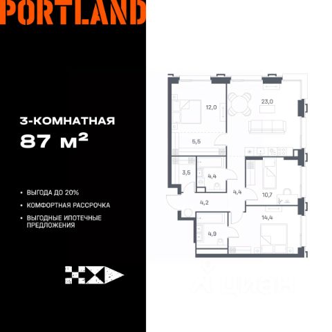 Цены указаны с условием 100% оплаты и стандартной ипотеки. Продаётся 3-к. квартира, 6 этаж в жилом комплексе бизнес-класса Portland от девелопера FORMA. ЖК расположен на берегу Москвы-реки в северной части района Печатники в акватории Южного речного порта. Основные преимущества проекта: • Самая протяженная береговая линия реки в Москве 13 км. • Вид на реку в сторону запада панорамные окна на самое широкое водное пространство Москва-реки (900 м) и на закат. • 95% квартир с видом на воду. • К Portland не примыкает крупных автомагистралей - отсутствие фонового шума дорог. • В перспективе ближайших 11 лет на территории района запланировано грандиозное преобразование и комплексное развитие. • Собственная набережная длиной 412 м., которая после завершения строительства сомкнется с эко-парком Печатники. • Прямой выход к воде и отсутствие проезжей части между Portland и береговой линией. • Инфраструктурное разнообразие: супермаркеты, крупные торговые центры, рестораны, кафе, фитнес-клубы, бьюти-салоны, компании сферы услуг и многое другое. • Собственная школа на 300 мест и детский сад на 275 мест. • Паркинг на 650 м/м • Транспортная вседоступность: метро, авто, велосипед, речной трамвай, канатная дорога • 15 мин. пешком до м. Печатники, 15 мин. на авто до ТТК, 20 минут на авто до Садового кольца
