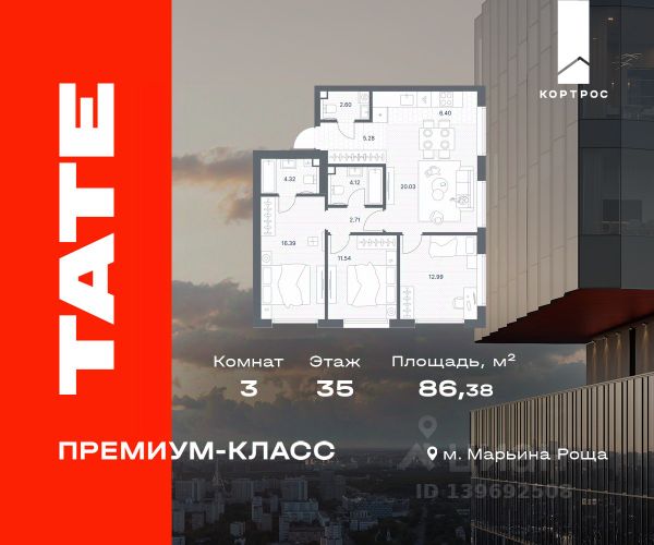 Прямая продажа от застройщика. Продается 3-комнатная квартира общей площадью 85.50 м² с предчистовой отделкой в ЖК премиум-класса Мод на 10-м этаже 44 этажного дома. Мод - жилой комплекс премиум-класса в историческом районе Москвы Марьина Роща. Пятый корпус станет частью единого высотного ансамбля, который поднимается над столицей и очерчивает новый горизонт города. Расположение корпуса Мод.C отличается тем, что виды на юго-запад Москвы не ограничены существующей застройкой. Почти все главные доминанты столицы — как на ладони: от сталинских высоток до небоскрёбов делового центра. Любоваться достопримечательностями будет вдвойне приятнее через панорамные окна. Закрытая территория жилого комплекса, продуманное благоустройство, эксплуатируемые кровли стилобата, образовательный центр с детским садом создают приватное пространство для тихой семейной жизни, а городская площадь с фонтанами, ресторан, супермаркет, коммерческая инфраструктура на первых этажах привносят созвучную с ритмом города динамику. Преимущества проекта: - В шаговой доступности новый деловой кластер Москвы - Выразительная авторская архитектура - Единственные в Москве фасады башен из натурального камня - Панорамное остекление и высота потолков до 4,8 м - Квартиры и апартаменты с отделкой MR Base - Многоуровневое благоустройство с зонированием на закрытой территории - Многофункциональный образовательный детский центр с детским садом - Двухуровневый подземный паркинг Транспортная доступность: - 5 минут пешком до станции метро "Марьина Роща" - 3 минуты до ТТК - 15 минут до Цветного бульвара Компания MR предлагает своим клиентам специальные условия приобретения квартир в рамках программ ипотечного кредитования от банков-партнеров.