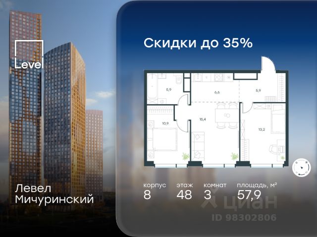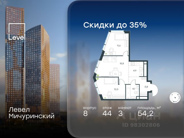 4 дня до окончания акции "Скидка 8%" Весь март - скидка до 8% действует до 31.03.2026 г. при 100% оплате и не субсидированной ипотеке! В продаже 3-к квартира от застройщика. Общая площадь 76.00, жилая 37.00, кухня 20.9. Квартира расположена на 7 этаже жилого квартала "Событие-6", корпус 2, Секция 4. Квартира без отделки. Срок сдачи: 4 кв. 2029 года. СОБЫТИЕ.6 — финальный дом парк-квартала СОБЫТИЕ на Мосфильмовской. Переезжайте в уже сформированный квартал с готовой инфраструктурой и парком! Премиальный жилой комплекс в престижном районе Москвы предлагает стильную архитектуру, продуманное благоустройство и великолепно разнообразие общественных пространств. Свой парк прямо возле дома! Архитектура Архитектура СОБЫТИЯ.6 выполнена в ультрасовременном стиле московским бюро Atrium на основе дизайн-кода британских архитекторов LDA Design и UHA London. Дом отличает оригинальная геометрия фасадов, большое остекление и высокие лобби (до 6,2 м) с авторской мебелью и светильниками. Расположение Мосфильмовская улица (Раменки) — один из престижных районов Москвы. Близость к историческому и деловому центру, природным зонам Запада столицы. Транспортная доступность: • 10 мин до Москва-Сити и ТТК; • 15 мин до Садового кольца; • 25 мин до аэропорта Внуково; • 7-10 мин до станций метро "Аминьевская" и "Мичуринский проспект". Инфраструктура: • парк "Событие" (12 га, финалист конкурса Правительства Москвы) с беговыми (1,5 км) и велодорожками (2,7 км), экотропой (1,6 км), площадками, лекторием; • школа, детский сад, магазины, салоны красоты, рестораны (к моменту заселения); • мультидвор с игровыми и спортивными площадками, мини-бульваром; • общественная терраса на 10-м этаже (коворкинг, лаунж); • Закрытые общественные пространства: детская комната, спортивный зал, коворкинг, лаунж-зоны. Паркинг 256 мест для жителей (48 — для электромобилей), 24 гостевых (5 — для электромобилей), мойки колес, кладовые, зоны для велосипедов. Окружение Парки и заповедники (Воробьёвы горы, Матвеевский лес и др.), МГУ, театр им. Н. И. Сац, стадион "Лужники". Безопасность Видеонаблюдение, контроль доступа, видеодомофоны, консьерж-сервис 24/7, системы пожарной безопасности и мультисервисная оптическая сеть.