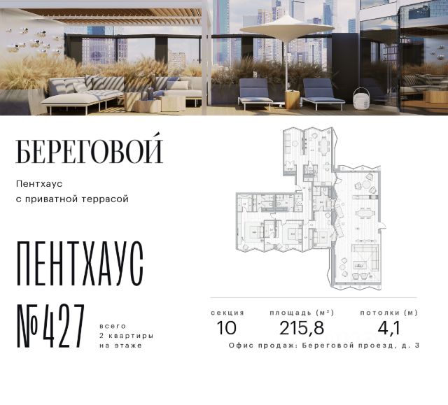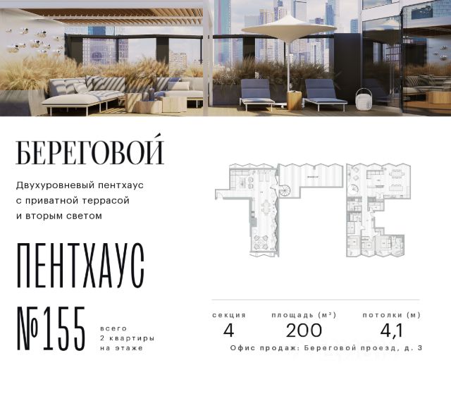 Прогнозный рост стоимости +50% в течение 2,5 лет.* Река. Парк. Сити. Готовый дом в идеальном месте. Продается 3-комнатная квартира на 18 этаже с панорамным остеклением и видом на закрытый парковый двор. Береговой — квартал курорт в центре столицы. Пешеходная набережная начинается от дома: никаких дорог между вами и рекой. Уникальное сочетание природы парка Фили и ритма Сити. Инвестиционный потенциал — в развитии территории: продление набережной, открытие детского образовательного кластера, премиального фитнеса и гастрономических пространств. Ввод всех корпусов жилого квартала поддержит рост стоимости. Начните действовать выгодно уже сегодня. Ключи от нового образа жизни в Береговом: 12 террас на крышах — виды на Москву с высоты птичьего полета Лобби с камином, переговорной и консьерж-сервисом Большой премиум-фитнес (4700м2) с бассейном, термами и спа-комплексом Детство на берегу Москвы-реки — для маленьких резидентов будут построены школа и детский сад на 1000 и 300 мест Гастрономическая набережная: рестораны и премиум-сервисы откроются на первых этажах Причал "Береговой" рядом с домом — путешествуйте по городу, пока другие стоят в пробках Безопасность и уединение: контроль доступа, видеонаблюдение и круглосуточная диспетчерская Двухуровневый подземный паркинг и кладовые. Безупречная квартира для жизни: Пространство света и воздуха: панорамные окна и высокие потолки 3.2 м Технологии: центральное кондиционирование и роботизированная система очистки фасадов — вид из окна всегда будет идеальным Совершенство планировки: просторная кухня-гостиная и максимум полезной площади Квартира без отделки — возможность создать уникальный интерьер в вашем уникальном стиле. Или выбирайте свою версию идеального дома в коллекции планировок: С изолированными спальнями Мастер-спальнями с гардеробными и ванными Видовые ванные комнаты Функциональные постирочные Эксклюзивные лоты: Пентахусы с приватными террасами Двухуровневые пентхаусы Локация, о которой мечтают: 10 минут до Сити — и вы в эпицентре деловой жизни. Две станции метро в пешей доступности — когда каждая минута на счету. Утром — пробежка по парку Фили, вечером — прогулка на велосипеде вдоль реки, выходные — водный спорт в Крылатском. Речные трамвайчики вместо такси, зеленые парки и благоприятная экология — привилегии престижного ЗАО Москвы. В 2025 году открыт мост Академика Королева, что обеспечило дополнительный выезд на ТТК и Звенигородское шоссе. Условия покупки: выгодные программы покупки от застройщика, специальные условия при полной оплате. Оставляйте заявку на персональную презентацию в шоу-руме. *Не является индивидуальной инвестиционной рекомендацией.