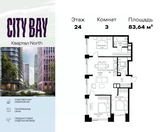 Прямая продажа от застройщика. Продаётся 3-комнатная квартира общей площадью 73.70 м² с предчистовой отделкой в ЖК City Вау на 8-м этаже 20 этажного дома. Корпус сдан. Концепция жилого комплекса City Вау - настоящий город в городе с отлично развитой инфраструктурой и собственной благоустроенной набережной. На территории жилого комплекса расположено пять кварталов - Atlantic, Pacific, Indian, North, Cliff. Жилой квартал City Вау отличается оригинальной концепцией и выделяется среди других проектов такими характеристиками как: - Архитектура, - Виды из окон, - Природное окружение, вызывая гордость у жителей и восхищение у прохожих. Вся жизнь района Покровское-Стрешнево строится вокруг водных объектов: - Пойма реки Сходни с уникальной экосистемой, - Речка Химка и Химкинское водохранилище, - Москва-река, - Канал имени Москвы. Кругом вода, и местные с удовольствием этим пользуются. А сразу за рекой - центр водного спорта в Строгино с вейк-парком и яхт-клубами. Помимо воды, здесь очень много зелени: - Рядом Сходненский ковш памятник природы, естественный амфитеатр глубиной 40 метров; - Парк при усадьбе Братцево с фруктовым садом; - Дубовая роща "Маяк", - Алешкинский лес; - Лесопарк Покровское-Стрешнево с пляжами и бобрами. Главные транспортные артерии района: - Волоколамское шоссе, - Таганско-Краснопресненская линия метро и МЦД-2. Всего за 20 минут можно добраться до центра на машине или метро, а МЦД связывает ЖК City Вау с северными, восточными и юго-восточными районами. Компания MR предлагает своим клиентам специальные условия приобретения квартир в рамках программ ипотечного кредитования от банков-партнеров. Продается 3-комнатная квартира в ипотеку в новостройке рядом с метро Мякинино.