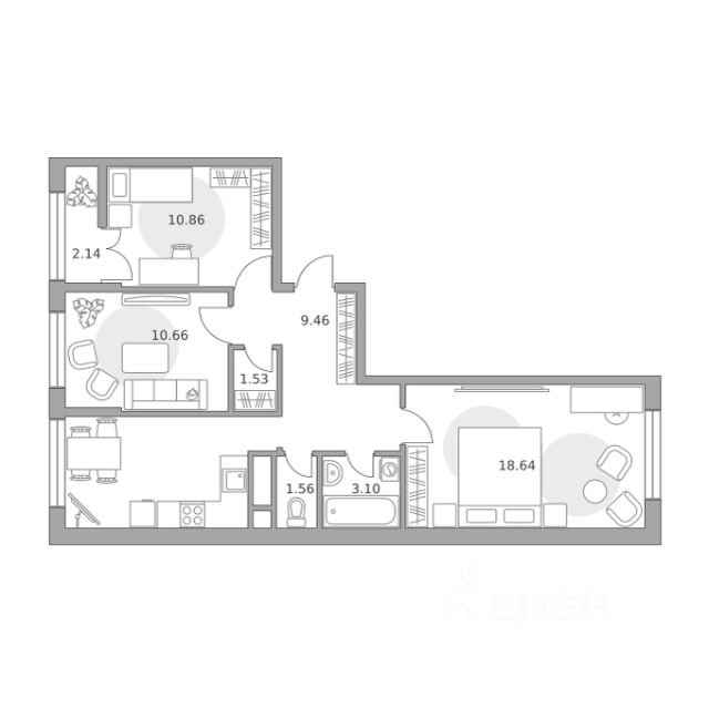 Продаётся 3-комнатная квартира 5, площадью 69,55 м², на 2 этаже в ЖК "Пехра" корпус 8.1. Стоимость — от 14849573 руб. Квартира без отделки, планировка угловая, окна во двор.