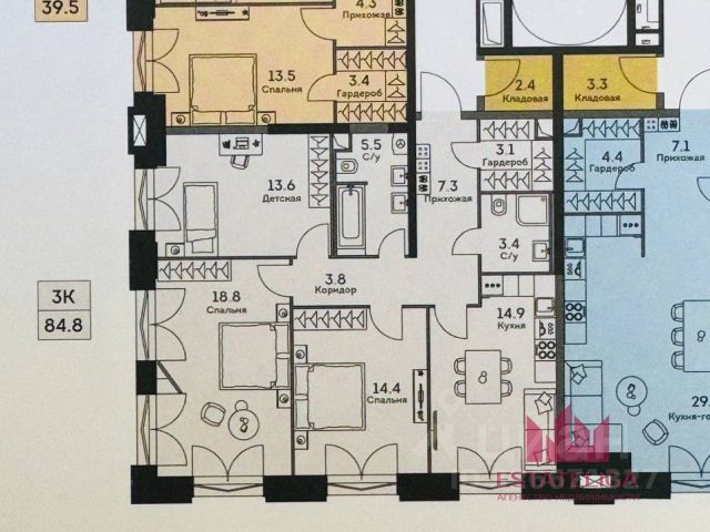3-комн. квартира в ЖК "Ever" на 4 этаже в 34 этажном здании Корпус 5. Общая площадь: 60.1 кв.м., жилая: 41.9 кв.м. Высота потолков 3.00 м.