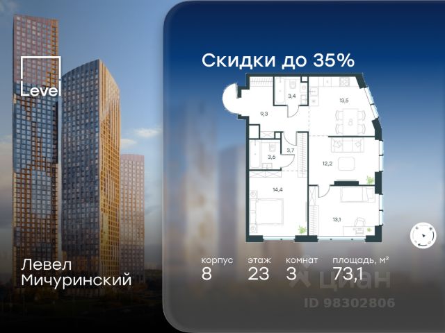 О квартире Продаётся 3-комнатная квартира общей площадью 89 кв.м. без отделки. Квартира расположена на 13 этаже корпуса 5.7.1 в жилом комплексе бизнес-класса "Среда на Лобачевского" в пешей доступности от метро "Аминьевская". О жилом комплексе "Среда на Лобачевского" полностью соответствует критериям современного жилого пространства. Взяв за основу рациональный подход, мы гармонично соединили дизайн, актуальные тренды и функциональность. Продуманный современный экстерьер и функциональные планировки внутри, приватные пространства и разнообразные досуговые зоны для каждого члена семьи — все это "Среда на Лобачевского". Инфраструктура Район отлично развит и наполнен жизнью, здесь уже есть вся необходимая инфраструктура — детские сады, школы, медучреждения, торговые центры, благоустроены парки для прогулок и отдыха, удобен и легкодоступен городской транспорт. Рядом расположены учебные корпуса крупных университетов — МГУ, МГИМО и РАНХиГС. Школы и детские сады в районе занимают высокие позиции в городских рейтингах, поэтому вам не придется беспокоиться о качестве образования детей. Как и об отдыхе: поблизости расположены живописные пруды, реки и парки. Это Парк Олимпийской деревни, Парк имени 50-летия Октября, Мещерский парк и Очаковские пруды. Теперь поставить галочки в еженедельном чек-листе "спорт-прогулки-встречи с друзьями" можно, не покидая любимый район. Особенности Особое внимание в проекте уделяется созданию функциональных пространств не только внутри дома, но и за его пределами. В ландшафтном парке "Среды на Лобачевского" расположены крытые зоны для спокойного времяпровождения, места для активного отдыха и спорта, коворкинг, соседский комьюнити-центр, водные объекты. —Ландшафтный парк во дворе. —Водный сад с зонами отдыха. —Зоны коворкинга. —Дизайнерские гранд-лобби. —Бесключевой доступ. —Подземный паркинг.