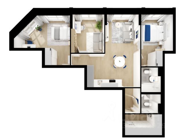 Продаётся 3-комнатная квартира 1530, площадью 56,45 м², на 20 этаже в ЖК "Ильинойс" корпус 3. Стоимость — от 14137831 руб. Квартира без отделки, планировка односторонняя, окна во двор.
