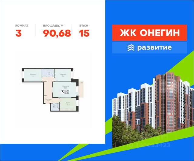 Продается квартира площадью 91.38 кв. м с отделкой white box на 9 этаже 22 этажного дома. Квартира находится в новом жилом комплексе "Онегин", расположенном по адресу: Московская область, г. Подольск, ул. Садовая 3, корп. 1. "Онегин" - начало новой жизни. Проект от девелопера "Развитие" расположился в центральной части Подольска - города-спутника столицы. Жилой комплекс состоит из 10 секций переменной высоты (20 - 22 этажа) и включает в себя 510 квартир, собственную инфраструктуру, закрытый благоустроенный двор-парк, подземный паркинг на 262 машино-места. Прекрасный баланс города и природы - ЖК "Онегин". Расположение Пешком: - 5 мин. до остановки "Красная горка"; - 10 мин. до склона у реки Пахры; - 30 мин. до МЦД "Силикатная" (или 15 мин. на автобусе). На автомобиле: - 3 мин. до проспекта Ленина с выездом на Симферопольское шоссе; - 10 мин. до центра Подольска; - 30 мин. до ст. метро "Бульвар Дмитрия Донского"; - 35 мин. до МКАД; - 1 час до центра Москвы. Благоустройство - большой приватный двор только для пешеходов; - собственный сквер с всесезонной растительностью; - яркий игровой комплекс для детей всех возрастов; - спортивный корт с тренажерами; - площадка для баскетбола и футбола; - стильная входная группа с витражным остеклением; - 2 пассажирских лифта и 1 грузовой в каждом подъезде; - беседки и скамьи для отдыха; - экологически-чистое игровое и спортивное оборудование; - освещение в темное время суток; - гостевая автостоянка на отдельной территории; - все сервисы бытовых услуг в шаговой доступности. Окружение - досуговые пространства в любое время года: парк культуры и отдыха имени В. Талалихина, музей-заповедник "Подолье", горнолыжный комплекс "Красная Горка", исторические усадьбы "Остафьево" и "Дубровицы"; - школа и детский сад в 5 минутах ходьбы; - торгово-развлекательные центры "Капитолий", "Галерея", "Кварц"; - 3 фитнес-центра, стадионы "Зенит" и "Подолье", 4 взрослых и детских бассейна.
