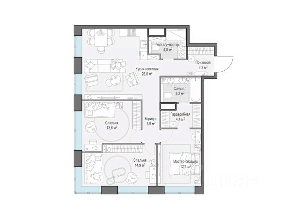 Арт. 100769978 Продаётся евро 4-комнатная квартира в строящемся доме (Корпус 3), срок сдачи: IV-кв. 2027, общей площадью 80,77 кв.м., на 11 этаже. NOVA - первый проект в коллекции samolet select, который сочетает в себе образец практичной премиальности и гармоничного соседства с природой. Архитектура от голландского бюро De Architekten Cie. Архитектура, которая гармонично вписывается в современный облик города и никогда не устареет, это дом на века. 12 минут до комплекса "Москва-Сити", 10 минут до Садового кольца, МГУ и парка Воробьевы Горы. Ближайшая станции метро Минская находится в 16 минут ходьбы.