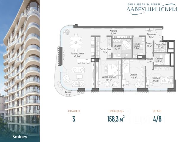 Просторная светлая квартира площадью 217,6 кв. м. с окнами на две стороны света. Окна кухни-гостиной смотрят на канал с фонтанами. Продуманная планировка позволяет разместить три спальные комнаты с отдельными санузлами и гардеробными, постирочную. Клубный дом DUO расположен в самом центре города, на Софийской набережной острова Балчуг в нескольких минутах от Кремля. DUO воплощает в себе дуальность наследия прошлого и архитектуры будущего. Историческое наследие дополняется современными архитектурными решениями и технологиями, создавая пространство вне времени. В проекте (для покупки доступны) 51 эксклюзивная коллекционная квартира с видом на Москву-реку, а также роскошный 2-уровневый пентхаус 1150 м2 с собственным бассейном площадью 54 м2 и видом на Кремль. Владельцам квартир DUO будет доступна камерная инфраструктура, включающая в себя: изысканные лобби, комнаты для отдыха и переговоров, винотеку, кинозал, 2-уровневый подземный паркинг внутри клубного дома, зона для хранения колясок и велосипедов. Рядом расположены знаковые места города: Московский Кремль, Александровский сад, Репинский сквер, Храм Христа Спасителя, ГЭС-2, парк искусств "Музеон" и Третьяковская галерея. Такая исключительная локация позволит резидентам наслаждаться преимуществами приватной атмосферы, оставаясь в эпицентре городской жизни. 3-комнатная квартира в ипотеку в новостройке рядом с метро Полянка.