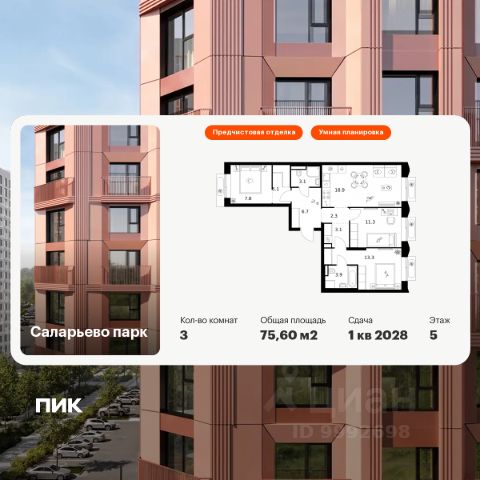 Продаётся 3-комн. квартира площадью 82,4 кв.м на 6 этаже 16 этажного дома (Корпус 57.1, Секция 1) проекта ПИК Саларьево парк. Светлый просторный подъезд на уровне земли, функциональная планировка, большие окна, предчистовая отделка. Жилой район "Саларьево парк" расположен в Новой Москве, в четырёх километрах от МКАД по Киевскому шоссе. Две станции метро: "Саларьево" и "Филатов луг", — находятся в пешей доступности от проекта. Дойти до них можно за 510 минут. В квартале уже создана качественная среда, где есть абсолютно всё для полноценной жизни, работы и отдыха. Благодаря удобному расположению проекта всё важное будет рядом: детские сады, школы, кафе и рестораны, шопинг в торговых центрах, фитнес и даже аэропорт. Все корпуса в квартале гармонично сочетаются, образуя единую городскую среду. Между собой их объединяет невысокая этажность и натуральная цветовая гамма. Здесь приятно гулять и проводить время на улице всей семьёй. В "Саларьево парке" создана уникальная образовательная среда, включающая в себя шесть школ, рассчитанных на 6 250 учеников. Две из них уже открыты, их посещает 2 300 детей. Также на территории "Саларьево парка" находится 12 детских садов, один из которых с бассейном. Сейчас уже открыты 7 садов. В "Саларьево парке" открыта уникальная игровая площадка — PlayHub "Оригами". Здесь есть ручей, горка-труба и рельефные холмы. Взрослые смогут отдохнуть в уютном кафе, пока дети играют. Также на территории проекта есть SportHub — большая спортивная зона, разделённая по интересам и возрастам. Здесь можно заниматься разными видами спорта: футболом, баскетболом, волейболом и стритболом. Зимой центральную часть площадки превращают в каток. Во дворах-парках жилого квартала есть места для отдыха, детские и спортивные площадки. На первых этажах домов расположены магазины, кафе и полезные сервисы. Также вблизи проекта есть несколько масштабных торговых центров. До ТЦ "Саларис" пять минут пешком, до "Рио", Metro Cash & Carry и "Леруа Мерлен" — пять минут на автомобиле. Артикул 1019096 (Застройщик ООО "Специализированный Застройщик "Тирон")