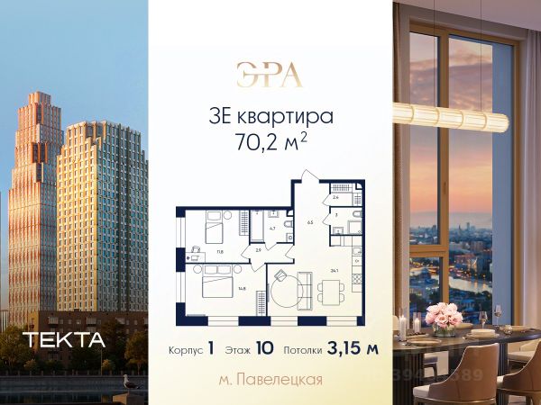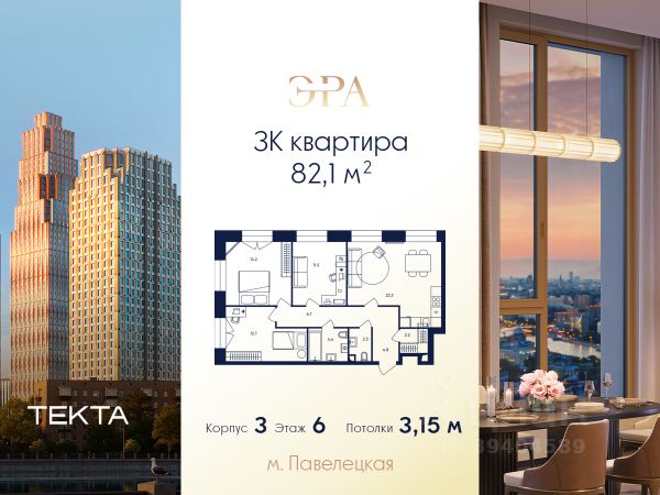 Рассрочка 0% с платежом от 250 000 ₽ в месяц. 3-комн. квартира в ЖК "ЭРА" на 13 этаже в 37 этажном здании Корпус 6. Общая площадь: 66.1 кв.м., жилая: 39.10 кв.м. Высота потолков 3.15 м. Современный премиум-квартал ЭРА на Дербеневской набережной, формирующий новый архитектурный облик Даниловского района Москвы. Жилой комплекс из шести высотных корпусов выполнен в актуальной интерпретации стиля ар-деко, где ритмичные линии фасадов, натуральный мрамор и изысканные орнаменты создают гармоничный и запоминающийся образ. ЭРА предлагает жителям единый просторный закрытый двор. Инфраструктура двора включает разнообразные детские игровые площадки, зоны для занятий спортом, а также места для спокойного отдыха — в всесезонном зеленом лабиринте или яблоневом саду. Для озеленения территории планируется высадка около 3000 деревьев и кустарников. Их сохранность обеспечат система автополива, а для комфорта в холодное время года малые архитектурные формы будут оборудованы подогревом. Вторая очередь комплекса включает три корпуса высотой от 37 до 52 этажей. Впечатляющие входные группы, разработанные бюро ХААСТ, встречают жителей потолками 8,8 метров. В лобби создана атмосфера уюта благодаря индивидуальной ароматизации и музыкальному сопровождению. Здесь же обустроена кофейная зона с профессиональной кофемашиной, а для дополнительного удобства установлен постамат. Высокий стандарт чистоты в любое время года обеспечивают роботы-уборщики, что подчеркивает технологичность комплекса ЭРА. Для комфортного подъезда такси перед каждым корпусом предусмотрены специальные зоны подачи машины и высадки пассажиров. Подземный паркинг на 285 мест. Ключевое преимущество — превосходная локация в развивающемся районе с готовой инфраструктурой. Всего в 5 минутах от Садового кольца, в шаговой доступности от Замоскворечья и набережной Москвы-реки, вы сможете наслаждаться динамикой городской жизни. При этом в самом комплексе на первых этажах будут работать кафе, магазины, салоны красоты и детские образовательные пространства. ЭРА — это гармоничный симбиоз статусного адреса, безупречного сервиса и приватности для жизни вашей мечты.