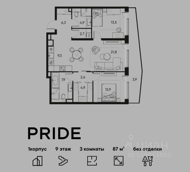 В премиальном жилом квартале PRIDE продается 3-комнатная квартира в 1 корпусе, на 9 этаже, в секции 10. Её общая площадь составляет 87 м². Пространство включает 2 уютные спальни 13,5 м², 12,9 м², просторную кухню-гостиную 31,1 м² и 2 ванные комнаты 7,9 м² и 4,9 м². Ключи в 2026 году. Удобная локация: Жилой квартал расположен в 15 минутах от Цветного бульвара в историческом районе Марьина Роща. До любой точки города быстро и удобно добраться, как на общественном транспорте, так и на авто — комплекс находится всего в 3 минутах от ТТК и в пешей доступности от метро. Яркая архитектура с переменной высотностью от 7 до 22 этажей от именитого бюро APEX формирует запоминающийся облик проекта. Развитая инфраструктура: Территория квартала делится на несколько отдельных частей: открытый просторный бульвар 3500 м² для прогулок и два внутренних камерных двора. Внутри предусмотрены площадки для спорта, места для игр и тихие пространства для отдыха и неторопливого общения. Коммерческие и торговые помещения спроектированы на уровне первых этажей: супермаркеты, магазины, рестораны и кофейни, барбершоп, спа-салон и другие сервисные точки. Образовательный центр со школой на 257 учеников и детским садом на 112 мест на собственной территории квартал - идеальное решение для семей с детьми. Таким образом, внутренняя инфраструктура PRIDE обеспечит все базовые потребности будущих жителей. Благоустроенная территория: Ландшафтный дизайн с многоуровневым и замысловатым озеленением будет радовать жителей на протяжении всех сезонов — богатая флора дворов включает в себя несколько десятков видов растений. Лобби как в лучших отелях мира: На первых этажах резидентов и гостей встретят лобби с авторским дизайном от Sundukovy Sisters, бюро знаменито своими работами для отелей и ресторанов премиум-класса во всем мире. Надежный застройщик: Девелопер PIONEER — компания с 24-летней историей. В портфеле — 40 проектов жилой, коммерческой, социальной и многофункциональной недвижимости в Москве и Санкт-Петербурге. С 2001 года было реализовано 2,9 млн м². В настоящее время 1,6 млн м² находятся в стадии проектирования и строительства. Среди новых знаковых проектов девелопера — премиальные жилые кварталы и деловые объекты класса A. Квартира