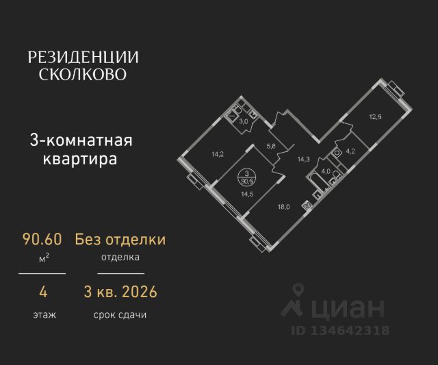 Продается трехкомнатная квартира в девятиэтажном монолитном доме жилого комплекса "Резиденции Сколково". Общая площадь квартиры - 100,7 кв. м, этаж 4 из 9. Срок сдачи - 2 квартал 2027 года. Резиденция 2.1 состоит из 5 секций: - 1 и 5 секции с отделкой White Box с возможностью повышения до дизайнерской за дополнительную плату - Остальные секции - без отделки ЖК "Резиденции Сколково" - это современный проект бизнес-класса, расположенный в престижном районе Сколково, у западной границы Москвы. ТРАНСПОРТНАЯ ДОСТУПНОСТЬ: - 0 км от МКАД - 10 минут на личном авто до метро "Озёрная" Солнцевской линии - 15 минут на личном авто до Москва-Сити по Кутузовскому проспекту - 20 минут на личном авто до центра по проспекту Генерала Дорохова - 24 минут на личном авто до центра по Мичуринскому проспекту ОСОБЕННОСТИ РЕЗИДЕНЦИИ 2.1: - панорамное остекление - французские балконы - сквозные входные группы с безбарьерным входом - стильная мягкая зона ожидания - колясочные во входных группах на 1 этажах - входная группа 1 этажа каждой секции оснащена санузлом - паркинг на -1 этажах - по 2 лифта: 1 пассажирский, 1 грузопассажирский ПРИВАТНОСТЬ: Огороженная, закрытая территория, круглосуточное видеонаблюдение, контроль доступа во внутренний двор. БЛАГОУСТРОЙСТВО И ИНФРАСТРУКТУРА: Масштабное озеленение в концепции "двора-парка" и множество площадок отдыха для взрослых и детей. В 5 минутах ходьбы расположен Мещерский лесопарк. В жилом комплексе уже построены и работают 2 муниципальных детских сада с бассейном, школа на этапе строительства. В непосредственной близости - частные и муниципальные детские сады и школы, кафе и рестораны, продуктовые магазины, салоны красоты и другие готовые объекты городской инфраструктуры. *В 3D туре представлена отделка "Фрунзуская классика. Business Plus"
