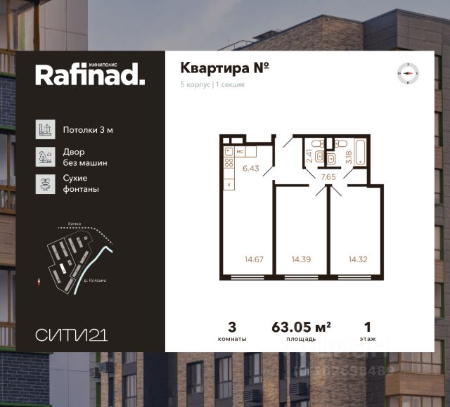 ТОЛЬКО 4 ДНЯ ДО 10.02 • Дополнительная скидка 10% • Ставка 10% по стандартной ипотеке для всех без наценок • Ставка 3,5% по семейной ипотеке Успейте купить выгодно! Прямая продажа от застройщика! Жилой Комплекс класса Комфорт. Продаётся 3-к квартира номер 225 общей площадью 67.6 кв.м. на 2-м этаже 9 этажного здания. Отделка Whitebox. Цена с учётом скидки. Особенности квартиры: - Просторная спальня, в которой можно разместить большую кровать. - Распашная планировка - отличное сочетание удобства и свободы. - Гостевой санузел - комфорт и удобство для ваших гостей. - Евроформат - просторное и удобное жилье с отличной планировкой. - Линейная кухня - функциональность и практичность в одном решении. - Гардеробная - удобство для хранения и организации вещей. - Просторная лоджия - идеальное место для уютных вечеров. Квартира с предчистовой отделкой (White box). Вам не придется заниматься черновыми и трудоёмкими работы, а чистовую отделку и дизайн - сделайте на свой вкус. Информация о комплексе: Квартал класса комфорт плюс, где современное городское пространство граничит с удивительной природой вокруг. 1-й Химкинский расположен на территории в 102 га и органично вписан в природное окружение Химкинского леса и канала им. Москвы. В проекте предусмотрена богатая коммерческая инфраструктура с собственным торговым центром, общеобразовательные учреждения и социальные объекты. Изюминкой жилого комплекса будут спортивно-оздоровительный комплекс с термами и SPA и семейный парк развлечений. Транспортная доступность: ЖК "1-й Химкинский" дает возможность выбрать любой способ передвижения как до города, так и до самых разных объектов, которые могут представлять интерес для его жителей. Не важно, какой способ передвижения вы предпочитаете, успевать всегда и везде можно вне зависимости от выбора транспорта. - 8 мин. пешком (800 м) до остановки "Золотая Арка" -10 мин пешком (1 км) до остановки "Поворот на Ивакино" Внутренняя инфраструктура: - Безопасность: закрытые дворы без машин, безбарьерная среда и сквозные подъезды, камеры на детских площадках с возможностью трансляции на смартфоне - Идеальный отдых в кругу семьи: семейный парк развлечений на территории, торговый центр (2-х этажный) общей площадью более 8 тыс. кв. м с фудкортом - Образование: 3 детских сада и современная муниципальная школа на 2450 мест - Спортивная среда: закольцованный веломаршрут с навигацией, спортивный комплекс с термами, закрытый тренажерный зал и зоны ворк-аута - Социальные объекты: поликлиника со станцией скорой помощи, пожарное депо - Подземный паркинг и кладовые помещения на -1 этаже, станция техобслуживания и автомойка на территории