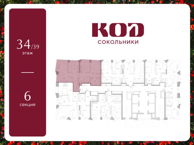 В семейном жилом квартале, расположенном в окружении более 500 га леса и объектов исторического наследия, продается 3-комнатная квартира площадью 82.6 кв. м без отделки. Квартира расположена на 5 этаже 39-этажного корпуса 2.1 жилого квартала бизнес-класса КОД Сокольники от девелопера Новая Эра. Отличная транспортная доступность - 3 мин. пешком до станции МЦД-3 "Митьково"; - 7 мин. пешком до станции метро "Сокольники"; - Удобный выезд на Русаковскую улицу; - 5 мин. на авто до ТТК; - 15 мин. на авто до Садового кольца. Продуманный архитектурный проект - Выразительная архитектура, созданная бюро "Остоженка"; - 70% квартир в квартале - видовые, что позволяет ежедневно наслаждаться панорамами на парк Сокольники, Останкинскую телебашню, исторический центр и Алексеевский монастырь; - 30% квартир - угловые. Увеличенные оконные проемы, панорамное остекление и продуманное расположение комнат усиливают эффект обзорности: гостиные и спальни получают максимум дневного света и живописные виды, которые становятся частью интерьера; - Высокие потолки от 3 метров в типовых планировках; - Дизайнерские лобби от модной студии 211.Studio; - Двухуровневый паркинг с подогреваемой рампой и пологим заездом, подходящим даже для спорткаров; Расположение Семейный жилой квартал КОД Сокольники - это дома бизнес-класса в престижном районе Сокольники. Район отличает хорошая транспортная доступность: несколько минут пешком до станции метро "Сокольники" и платформы МЦД-3 ("Митьково"), регулярные трамвайные и автобусные маршруты, удобный выезд на Русаковскую улицу и Третье транспортное кольцо. До Садового кольца можно доехать за 15 минут. Для пешеходов и велосипедистов в парковой зоне будут оборудованы широкие тротуары и велодорожки, обеспечивая комфортные условия для активного образа жизни. Внутренняя инфраструктура Резидентам будет доступна развитая клубная инфраструктура: собственный фитнес-рум, коворкинг с панорамным видом на парк, игровая комната для детей, пространства для мастер-классов и просторная гостиная, которую можно использовать для отдыха, просмотра кино или проведения мероприятий. На первых этажах жилых домов разместятся объекты стрит-ритейла: кафе, рестораны, магазины и различные сервисы - от аптек и салонов красоты до ателье и барбершопов. Рядом с жилыми корпусами появится деловой квартал с офисами и торговыми площадями на 75 тысяч кв. м, что делает проект привлекательным для тех, кто ценит возможность жить и работать поблизости. Благоустройство Центральным элементом квартала станет благоустроенный двор-парк площадью 3 га с собственным прудом и зелеными зонами для прогулок и отдыха. В границах двора предусмотрены современные игровые и спортивные площадки: мультифункциональная зона воркаута, площадки для волейбола и стритбола, площадки для пилатеса и йоги, скалодром, а также беговые и веломаршруты. В состав проекта войдет образовательный центр, включающий детский сад для 350 малышей, а также школу на 650 учеников.