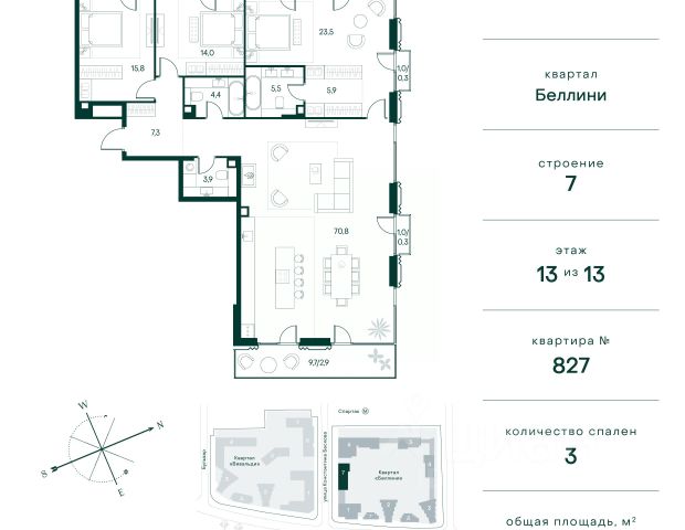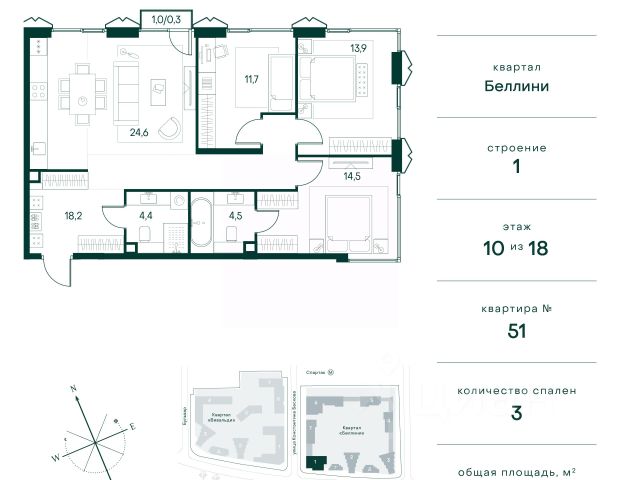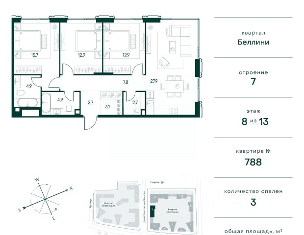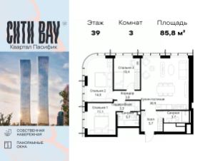 Продаётся 3-комнатная квартира 79 м². В жилом районе Алиа на 21-м этаже 30-этажного дома. Жилой район Алиа — это дома бизнес-класса у слияния Москвы-реки и Сходни. Алиа находится в Покровском-Стрешневе, экологически чистом районе на престижном северо-западе столицы. Район возводится на бывшей территории Тушинского аэрополя, где никогда не было промышленного производства. Алиа — это район разностороннего развития, спроектированный по принципу WORK.LIVE.PLAY.LEARN. Это "15-минутный город", где вся необходимая для комфортной жизни инфраструктура — на расстоянии приятной прогулки. У района удобное расположение: отсюда меньше 10 минут пешком до станций метро "Спартак" и "Тушинская" и всего полчаса на автомобиле до центра города или аэропорта Шереметьево. Архитектурную концепцию Алиа разработало бюро SOM (Skidmore, Owings & Merrill), авторы знаменитой "Бурдж-Халифа". В Алиа больше 140 планировочных решений, среди которых — редкие для Москвы форматы: квартиры с окном в ванной, пентхаус, сити-юниты и таунхаусы. Почти половина территории района отдана под благоустройство. В Алиа три парка: Линейный парк с кафе и магазинами, Центральный парк с амфитеатром, сухим фонтаном и большим плейхабом для детей всех возрастов и Прибрежный парк на собственной набережной, одной из самых длинных в Москве. В каждом урбан-блоке — закрытый внутренний двор с гипоаллергенными растениями и детской площадкой. В лобби каждого жилого корпуса в Алиа оборудована зона ожидания, колясочная, гостевой санузел и лапомойка для домашних животных. За стойкой ресепшена резидентов и их гостей встречает консьерж. Центральное лобби урбан-блока — это стильное общественное пространство с коворкингом, лаундж-зоной и кофе-пойнтом. Это "вторая гостиная" жителей урбан-блока и одно из мест, где формируется комьюнити Алиа. Два ключевых объекта инфраструктуры в Алиа — это спорткомплекс "Чкалов Арена", где представлены 25 видов спорта, и самый большой в стране бизнес-парк класса A, благодаря которому району обеспечено быстрое развитие.