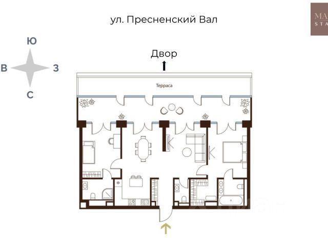 Старт продаж в новом клубном доме Климашкина 7/11 Продаётся 3-комнатная квартира общей площадью 156.10 м². Климашкина 7/11 — Клубный семейный дом с ультрасовременной архитектурой, в которую оправлена антикварная редкость — полностью сохраненный фасад особняка XIX века. В проекте всего 46 резиденций — ни одной лишней, ни одной случайной. На этаже — от двух до четырех квартир, что создает исключительную приватность, редкую даже для элитного сегмента. Окружение Расположенный в тихом интеллигентном квартале Пресненского района, Клубный дом Климашкина 7/11 соседствует со знаковыми зданиями старой Москвы Пресненского района. Всего в нескольких шагах находится памятник конструктивизма Центр Зотов, мастерская Зураба Церетели и Римско-католический кафедральный собор, а также в пешей доступности — Музей русского импрессионизма, парк Красная Пресня и Патриаршие пруды, Театр Сатиры и Московский Зоопарк. Транспортная доступность — 5 минут до Садового кольца; — 5 минут до ТТК; — 10 минут до Делового центра; — 12 минут до Белорусского вокзала; Внутренняя инфраструктура — Просторное дизайнерское лобби с потолками до 5 м; — Собственный приватный ландшафтный сад от L. BURO; — 2-х уровневый подземный паркинг на 55 машино-мест; — Собственный SPA и фитнес-центр; — Умные системы безопасности и сервис самого высокого уровня.