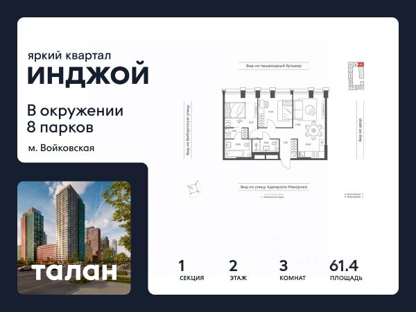 Цена указана с учётом скидки при 100%-й оплате, несубсидированной ипотеке, рассрочке (кроме программы "Рассрочка 0%"). Продается 3-комнатная квартира площадью 91.80 кв. м без отделки. Квартира находится на 6 этаже 20-этажного корпуса 3, в новом жилом комплексе бизнес-класса Левел Войковская, расположенном рядом с живописным заповедником "Покровское-Стрешнево" (застройщик - компания Level Group/Левел групп). Прекрасная транспортная доступность - 7 мин. пешком до станции МЦК "Балтийская"; - 15 мин. пешком до станции метро "Войковская"; - 8 мин. на машине до ТТК; - 15 мин. на машине до центра Москвы; - 20 мин. на машине до Москва-Сити. Продуманный архитектурный проект - стильная архитектура от мастерской Фефелова В. В.; - панорамные виды на парки, Химкинское водохранилище и Останкинскую башню; - лобби с высотой потолков до 6,45 метров; - более 20 видов планировок, включая редкие форматы квартир с террасой и увеличенной высотой потолков до 5,42 метров; - 2 варианта дизайнерской отделки в корпусе 4 как дополнительная опция к предчистовой отделке: стиль Модерн в светлых холодных тонах и стиль Классик в нейтральной бежевой гамме. Квартиры в корпусах 3 и 5 сдаются без отделки. Расположение Жилой комплекс Левел Войковская строится в престижном Северном округе Москвы, где развитая инфраструктура и живописная природа переплетаются в единый ансамбль. Войковский район окружают парки и набережные. В шаговой доступности - парк "Покровское-Стрешнево", не более 15-ти минут на велосипеде занимает путь до Тимирязевского парка и 9-ти минут до парка усадьбы Михалково. Рядом более 60 школ, 75 дошкольных учреждений, 17 государственных и 6 частных вузов, 25 супермаркетов, 4 торговых центра, среди которых ТЦ "Метрополис" и ТЦ "Авиапарк". Внутренняя инфраструктура На территории жилого комплекса предусмотрены коммерческие помещения: кафе, ресторан, пекарня и другие сервисы на первых этажах корпусов. Для жителей будет доступен отапливаемый подземный паркинг на 244 машино-места с доступом с любого этажа на лифте. На территории паркинга будет расположено 125 кладовых помещений для хранения сезонного инвентаря. Лобби и благоустройство Дизайн лобби жилого комплекса Левел Войковская создан совместно с бюро BLANK. Теплая цветовая гамма, ресепшен, зоны ожидания, лапомойки и гостевые санузлы - каждая деталь превращает лобби в комфортное продолжение вашего дома. 1,15 га площади в первых двух этапах строительства отведено под приватный внутренний двор, который спроектирован совместно с бюро "Правда". Детские площадки для всех возрастов, спортивные пространства для йоги, воркаута и петанка, уютные зоны для тихого отдыха или работы. Здесь утро начинается с вдохновения, а вечер наполнен приятными моментами. Лифты Комфортное перемещение внутри жилого комплекса обеспечат надёжные лифты с доступом в паркинг с жилых этажей. В каждом корпусе предусмотрено по 3 грузопассажирских лифта.