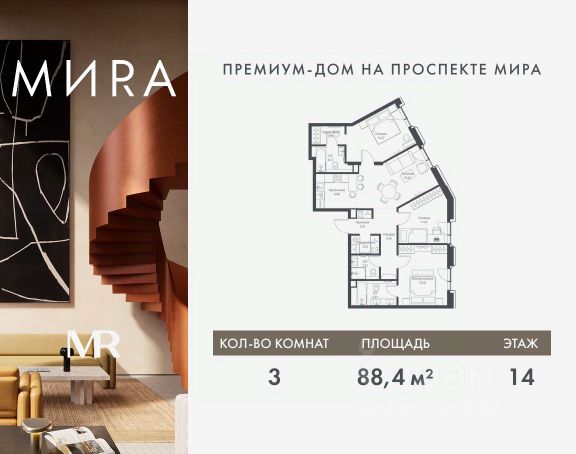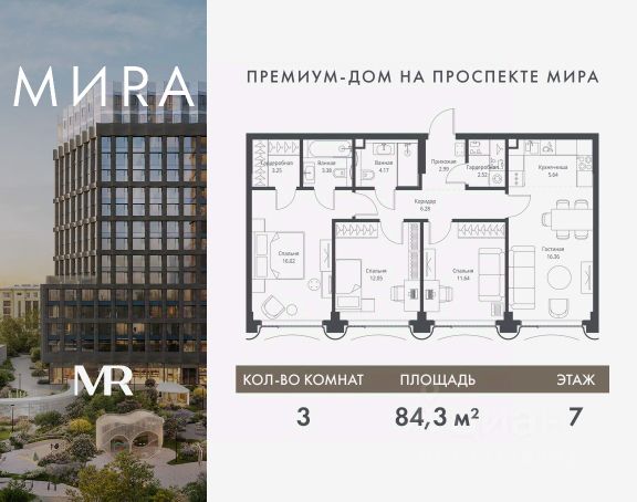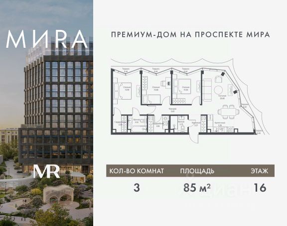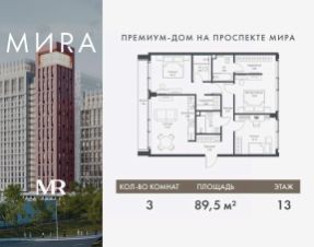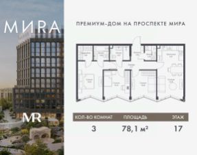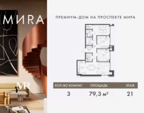 Прямая продажа от застройщика. Продаётся 3-комнатная квартира общей площадью 83.11 м² без отделки в доме премиум-класса МИRА на 3-м этаже 17 этажного дома. Квартира расположена в корпусе 1. Дом премиум-класса МИRA это: • Спокойный район с богатой историей и сложившейся инфраструктурой • Авторская архитектура на стыке классики и современности • Вход в парк прямо из жилого комплекса • Панорамные виды на Яузу, парки, ВДНХ и скульптуру "Рабочий и колхозница" • Удобные сервисы и безопасность для каждого резидента Расположение: Жилой квартал расположен в Алексеевском районе на северо-востоке Москвы, на второй линии домов, таким образом вы сможете дистанцироваться от шума и суеты проспекта Мира, но при этом будете жить недалеко от этой важной городской магистрали. Прямо у дома: • Парк Акведук • Река Яуза • Памятник "Рабочий и колхозница" Пешком: • 16 мин м. ВДНХ На автомобиле: • 12 мин ТТК • 15 мин Садовое кольцо • 12 мин Национальный парк "Лосиный остров" Благоустройство: Концепция благоустройства от бюро "ДРУЖБА" разработана в стиле "Лесная тропа". В уютном дворе расположились словно затерянные в лесу, площадки для отдыха. Они разделяются островками с травами, кустарниками, крупными камнями и деревьями, между которыми проходят узкие песчаные тропинки с деликатной подсветкой по вечерам. Центральной точкой притяжения для жителей станет главная площадь с фонтаном, которая открывается сразу из двух входных групп. Внутренний двор МИRA: • Детская площадка с зонами для игр малышей до трех лет и детей более старшего возраста • Спортивная площадка с профессиональным оборудованием для тренировок • Декоративные перголы • Воздушный арт-объект с подсветкой, похожий на облако • Чайный домик, где в отдельном отапливаемом павильоне можно в любое время года попить кофе с соседями или устроить камерное семейное чаепитие • Зоны для работы и отдыха с гамаком под навесом, скамейками и креслами Инфраструктура и окружение: В Алексеевском районе есть огромные благоустроенные парки, магазины, гимназии с высоким рейтингом и филиалы ВУЗов, частные и государственные детские сады, модные кофейни и фитнес-центры. В квартале МИRА предусмотрены: • 2 ресторана с видом на парк Акведук • 3 кафе • фитнес-студия • подземный паркинг на 330 машино-мест Компания MR предлагает своим клиентам специальные условия приобретения квартир в рамках программ ипотечного кредитования от банков-партнеров.