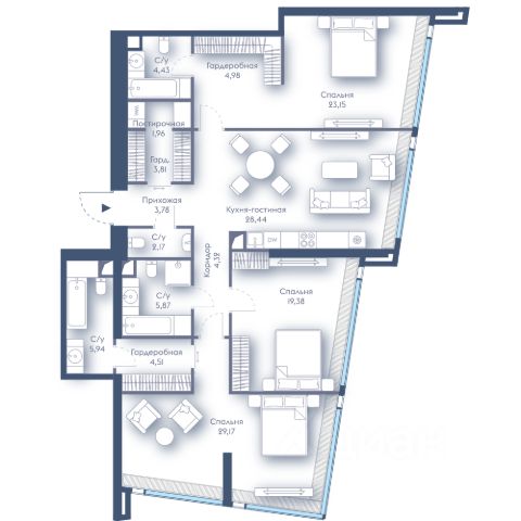 Старт продаж! Квартиры в Москва-Сити в самой инновационной башне Оне. В продаже 3-комнатная квартира площадью 103.00 м² на 50-м этаже. Новый современный жилой комплекс премиум-класса Оне расположен в самом сердце деловой жизни столицы — в Москва-Сити, где захватывающая дух архитектура встречается с безупречным уровнем комфорта. Оне находится в Пресненском районе, в пешей доступности от станции метро "Деловой центр". Проект был разработан выдающимся архитектором Сергеем Кузнецовым при участии международного бюро Gensler. Уникальная скульптурная форма башни, вдохновленная лентой Мебиуса, создает новый узнаваемый силуэт делового центра и задает непревзойденный стандарт вертикальной жизни. По замыслу архитекторов, жилой комплекс представляет собой две вертикальные башни, соединенные в нижней и верхней точках. На 85 этаже расположен Sky Garden — самый высокий в Европе парк с оазисом природы и секретным садом в облаках, а на 83 этаже парит стеклянный мост Sky Bridge с панорамными видами. Важнейшей особенностью комплекса является его всесторонняя инфраструктура по принципу All-in-Оне: закрытый Клуб с лаунжами, приватным кинотеатром, бильярдной, рабочими зонами и фитнесом. Здесь же расположена торговая галерея бутиков и премиальный гастро-кластер, концепцию которого разработал известный ресторатор Александр Сысоев. Особенности комплекса: - Эксклюзивная архитектура от главного архитектора Москвы - Самый высокий в Европе небесный сад Sky Garden на 85 этаже - Панорамное остекление от пола до потолка во всех квартирах - Smart-инженерия и сервис уровня пятизвездочного отеля - Приватная Клубная инфраструктура All-in-Оне - Трехуровневый паркинг с зарядными станциями для электрокаров - Круглосуточная безопасность и консьерж-сервис Расположение комплекса: - Пешая доступность от станции метро "Деловой центр" - 2 минуты до Экспоцентра - 5 минут до Дома Правительства - 7 минут до Кутузовского проспекта