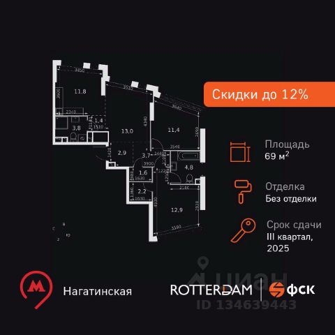 Прямая продажа от застройщика! Жилой Комплекс бизнес-класса. Продаётся 3-к квартира номер 144 общей площадью 73.3 кв.м. на 8-м этаже 20 этажного здания. Без отделки. Цена с учётом скидки. Особенности квартиры: - Мастер-зона с санузлом. Уют и комфорт в одном пространстве. - Просторная спальня, в которой можно разместить большую кровать. - Угловая планировка - больше пространства для ваших идей. - Мало квартир на этаже - уединение и тишина. - Окно в ванной - натуральное освещение для уюта и комфорта. - Увеличенная ширина окна/окон - больше света и визуального простора. - Угловое остекление - свет и воздушность в каждой комнате. - Гостевой санузел - комфорт и удобство для ваших гостей. - Душ помимо ванной - дополнительное удобство для вашей семьи. - Постирочная - организуйте пространство для стирки и сушки вещей. - Евроформат - просторное и удобное жилье с отличной планировкой. - Гибкая планировка - создайте пространство по своему вкусу. - Место для игры/занятия спортом - идеальное пространство для активных детей. - Просторная мягкая зона - комфорт и уют для отдыха всей семьи. - Возможность добавить спальное место - дополнительный комфорт для гостей. - Гардеробная - удобство для хранения и организации вещей. - Ниша под шкаф - компактное и удобное место для вещей. Информация о комплексе: В ЖК Роттердам отличное расположение, которое позволит вам выбирать свой сегодняшняшний маршрут и транспорт исходя из настроения, целей и погоды. Отсюда удобно добираться в центр как на метро станция находится в пешей доступности, так и на автомобиле. Варшавское шоссе связывает жилой комплекс с ТТК, а через Люсиновскую и Мытную улицы с Садовым кольцом. В качестве альтернативного маршрута можно использовать Нагатинскую набережную: дорога вдоль Москва-реки приведет к Кремлю и Павелецкому вокзалу. Для неспешной поездки предусмотрены трамвайные маршруты, а в теплое время года веломаршруты вдоль реки. Транспортная доступность: Всего в 5 минутах пешком до метро Нагатинская и 8 минутах от МЦК Верхние Котлы. Рядом Аэроэкспресс до метро Домодево. До ТТК 2,2 км и 4,9 км до Садового кольца. Внутренняя инфраструктура: Если вы ищете идеальный баланс между отдыхом и работой и обладаете активной жизненной позицией - ЖК Роттердам вам понравится. В ЖК: зоны коворкинга, плейхаб и детские площадки для отдыха всей семьей. Близость к деловому центру Москвы, в окружении 5 парков, рядом спортивные и развлекательные центры Если вы любите живописные виды и долгие прогулки - ЖК Роттердам - отличный вариант для вас, так как он расположен прямо на Нагатинской набережной с выходом на Москву реку! В ЖК Роттердам соблюден баланс между высоткой и малоэтатажным зданием, которое не потеряло ощущение уюта и не создает впечатление городских джунглей Если вы любите быть на высоте и без ограничений - выбирайте верхние этажи Для тех, кто ценит комфорт и собственное время Для тех, кто ценит комфорт и личное пространство Для тех, кому важен комфорт, безопасно