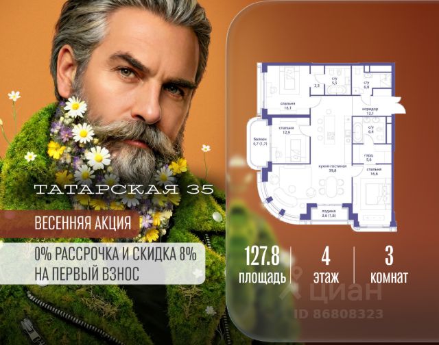 Продается просторная квартира площадью 105.80 м2 в жилом комплексе ТАТАРСКАЯ, 35. Квартира находится в 2 секции корпуса 2. Этаж 3-й из 19. Квартира без чистовой отделки, с просторной кухней 27.70 м2. Жилая площадь 46.40 м2. Высота потолка от 3.50. ТАТАРСКАЯ, 35 - новая архитектурная доминанта Замоскворечья, достопримечательность на фотопанорамах исторического центра Москвы. Элитный дом, созданный для тех, кто умеет смотреть далеко вперед, мыслить масштабно и воплощать собственный сценарий жизни. Вдохновляющие прогулки по променаду набережной, в уютных переулках, в парке "Зарядье", в Михайловском саду и Репинском сквере. Наслаждение высоким искусством в Третьяковской галерее, Доме Музыки, театральном музее им. А.А. Бахрушина, театре на Малой Ордынке. За окнами - Кремль, высотка на Котельнической, панорамы Замоскворечья и острова Балчуг, огни Садового кольца. Собственные спорт-румы, детская, репетиторская, бьюти-пространства, деловое пространство с коворкингом, переговорной и сигарной. Собственный трехуровневый фитнесс-центр с бассейном, тренажерным залом, сауной, хаммамом, массажным кабинетом. Площадь двора - 1,8 га, половина территории покрыта деревьями, кустарниками и лужайками. Дом расположен внутри Садового кольца - отсюда в считанные минуты можно добраться до важнейших мест столицы: достопримечательностей и парков, театров и ресторанов, деловых и административных центров. 7 минут до Кремля на автомобиле, 15 минут до Третьяковской галереи и 8 минут до Садового кольца пешком. Планировочные решения и визуализации предварительны, возможны изменения. Купить 3-комнатную квартиру в ипотеку в новостройке в районе Замоскворечье в Москве.