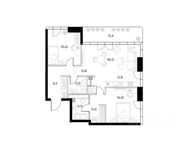 3-комнатные квартиры в новостройках в районе Донской в Москве