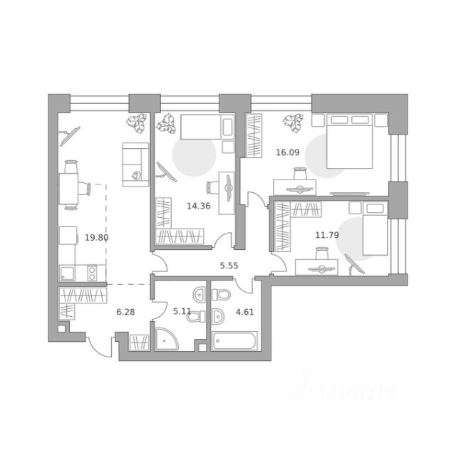 Цена указана с учётом скидки при 100%-й оплате, несубсидированной ипотеке, рассрочке (кроме программы "Рассрочка 0%"). В Даниловском районе столицы (ЮАО) продаётся 3-комнатная квартира площадью 57.70 кв.м без отделки. Квартира расположена на 2 этаже 27-этажного корпуса 14 в жилом комплексе бизнес-класса Левел Павелецкая Сити. Высота потолков 3.00м. Престижная локация Жилой комплекс бизнес-класса Левел Павелецкая Сити расположен в престижном Даниловском районе Москвы - историческом центре города в окружении парков, Москвы-реки и новейшей инфраструктуры. В 20 минутах пешком есть 3 станции метро, а в 5 минутах езды на авто - ТТК и Садовое кольцо. - 15 мин. пешком до метро "Павелецкая"; - 20 мин. пешком до станций "Тульская" и "Серпуховская"; - 8 мин. на авто до Кремля; - 10 мин. на авто до парка Горького и парка "Зарядье"; - 20 мин. на авто до башен "Москва-Сити". Авторская архитектура Авторская архитектура Авторская архитектурная концепция разработана бюро СПИЧ. Облик корпусов этапов 1 и 2 отсылает к стилистике архитектуры классического Нью-Йорка и золотой эпохи Голливуда. Корпуса этапа 4 вдохновлены эстетикой ар-деко. Умное линейное расположение корпусов гарантирует потрясающие виды на исторический центр и Москву-реку из большинства квартир. Дизайнерские лобби Изысканные интерьеры лобби жилого комплекса отсылают к классическим фильмам золотой эпохи Голливуда. Классика в жилом комплексе Левел Павелецкая Сити - не имитация, а современное осмысление лучшего в этом стиле. В каждом вестибюле оборудованы стойки ресепшен, комфортные зоны ожидания, гостевые санузлы, мойки для лап животных, колясочные. В корпусах по 3-4 лифта с прямым доступом в паркинг. Площадь лобби - от 47,9 до 114,9 кв. м, высота потолков - до 5,46 м. Благоустройство и инфраструктура Для создания благоустройства было приглашено 2 ведущих бюро - ADM и GAFA. Разноуровневое пространство вмещает в себя игровые площадки для детей всех возрастов, тропы здоровья для пеших прогулок, крытые аллеи с качелями, места для работы на свежем воздухе, многофункциональные спортивные площадки - зоны уличных тренировок, столы для пинг-понга, зоны командных игр. Общая площадь закрытого двора - 4,63 га. Комфорт - это когда рядом всё, что нужно для жизни. В жилом комплексе Левел Павелецкая Сити размещены 85 коммерческих помещений, где откроются супермаркеты, кафе, аптеки и многое другое. В составе проекта также предусмотрены собственный фитнес-клуб, развивающий центр Летово Кидс. Технологии и безопасность - Вайфай в лобби и на придомовой территории; - Автоматизированная система контроля и учета ресурсов; - Круглосуточное видеонаблюдение и охрана; - Круглосуточная связь с охраной через приложение, телефон или кол-центр; - Контроль доступа по биометрической системе распознавания лица; - Усиленный сотовый сигнал в лифтах и паркинге; - Распознавание номеров автомобилей при въезде/выезде в/из паркинга. Продается 3-комнатная квартира в новостройке на улице Дубининская в Москве.