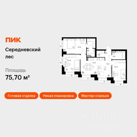Продаётся 3-комн. квартира площадью 57 кв.м на 13 этаже 16 этажного дома (Корпус 2.1.4, Секция 4) проекта ПИК Середневский лес. Светлый просторный подъезд на уровне земли, функциональная планировка, большие окна, c отделкой. В 10 минутах на автомобиле находится станция метро "Внуково", а в 15 минутах — станции "Филатов Луг" и "Саларьево". От них до центра Москвы всего 3540 минут. На рейсовом автобусе от жилого квартала до метро "Филатов Луг" — 20 минут. На территории "Середневского леса" появилось общественное пространство с игровыми площадками, местами для отдыха, пешеходными маршрутами и велопарковкой — для прогулок, отдыха и встреч жителей квартала. Также внутри жилого квартала уже открыта школа на 1100 мест и детский сад для 325 малышей. В дальнейшем откроется ещё один сад для 340 детей. Артикул 1038154 (Застройщик ООО "Специализированный застройщик Середнево") Купить 3-комнатную квартиру в новостройке в поселении Филимонковское в Москве.