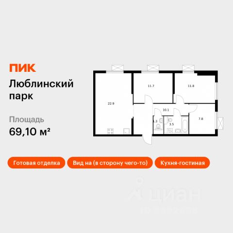 Продаётся 3-комн. квартира площадью 70,2 кв.м на 7 этаже 33 этажного дома (Корпус 14.1, Секция 1) проекта ПИК Люблинский парк. Светлый просторный подъезд на уровне земли, функциональная планировка, большие окна, c отделкой. Жилой квартал "Люблинский парк" расположен на юго-востоке Москвы, в шаговой доступности от станции "Братиславская". На метро до центра ехать всего 30 минут. Также недалеко станция МЦД "Перерва", от которой можно уехать в Москву или в область. В проекте 54 жилых корпуса, три школы, семь детских садов, поликлиника. В районе есть все условия для комфортной жизни: торговые центры, школы, детские сады, поликлиники и спортивные центры. Рядом находятся усадьба Люблино, скверы и парки. Различные магазины, кафе и другие сервисы откроются на первых этажах, а на подземных будут паркинги с удобной навигацией. В зелёных дворах без автомобилей мы построим детские площадки и места для отдыха. А ещё "Люблинский парк" стал третьим проектом ПИК с большой игровой площадкой PlayHub, которая уже открылась между 1-м и 2-м блоками на безопасном расстоянии от дороги. Новое детское пространство "Остров" воплощает идею бесконечной игры. Ландшафт площадки — это ещё и игровой элемент, который помогает детям придумывать множество самых разнообразных игр. Здесь интересно детям разного возраста — от малышей до подростков. Жителям квартала Люблинский парк и их друзьям доступен проект ПИКСПОРТ — это бесплатные занятия с профессиональными тренерами. Тренировки по разным направлениям, например йога, фитнес, бег, воркаут, проходят как в группе на улице рядом с домом, так и онлайн. Артикул 895915 (Застройщик ООО СЗ "Люблино Девелопмент")