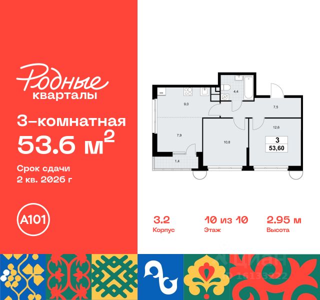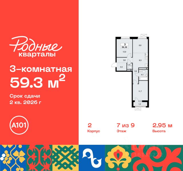 Старт продаж нового корпуса! Продается трехкомнатная квартира без отделки в 11 фазе города-парка "Первый Московский". Общая площадь квартиры - 94,9 кв. м, этаж 7 из 22. Планируемый срок ввода в эксплуатацию - 1 квартал 2029 года. Тип дома - монолитный. 5 корпус состоит из 2 секций: - 1 секция - без отделки - 2 секция - с отделкой White Box Город-парк "Первый Московский" расположен всего в 7 км по Киевскому шоссе от МКАД на территории Новой Москвы. Из города-парка прямой выезд на Киевское шоссе и трассу Солнцево-Бутово-Варшавское шоссе. ТРАНСПОРТНАЯ ДОСТУПНОСТЬ: - 7 мин. на личном автомобиле или 10 мин. на автобусе до станции метро "Филатов Луг" - 10 мин. на автомобиле или 20 мин. на автобусе до станции метро "Рассказовка" или "Саларьево" ПРЕИМУЩЕСТВА 5 КОРПУСА: - живописные виды на Ульяновский лесопарк - входные группы с безбарьерным входом - просторная колясочная в каждой секции - в каждой секции - 3 лифта: 2 пассажирских, 1 грузовой - количество квартир на этаже: 1 секция - 4 квартиры, 2 секция - 5 квартир - на 1-ом этаже в секции 2 расположено коммерческое помещение - на -1-ом этаже каждой секции запроектированы кладовые помещения - обеспеченность машино-местами: гостевой паркинг 48 м/м, многоуровневые паркинги рядом с домом ВНУТРЕННЯЯ ИНФРАСТРУКТУРА И БЛАГОУСТРОЙСТВО: Дома 11 фазы граничат с Ульяновским лесопарком. Вся территория 11 фазы разделена на 2 типа: - приватное дворовое пространство с детскими игровыми и спортивными площадками. Дворы свободны от машин. - прогулочные маршруты с зонами отдыха. Прогулочный маршрут объединяет дома 11 фазы в единое пространство, за счёт оригинальной геопластики создаётся уникальный разноуровневый ландшафтный узор. РАЗВИТАЯ ИНФРАСТРУКТУРА В ОКРУЖЕНИИ: - общеобразовательная школа 2120 корпус ш3 (всего в проекте 5 школ) - детский сад 2120 корпус д4 (всего в проекте 8 детских садов) - школа искусств - поликлиника - торговый центр Столица - кафе, продуктовые магазины, аптеки, фитнес центры, салоны красоты и пр. - в пешей доступности благоустроенный парк Филатов Луг