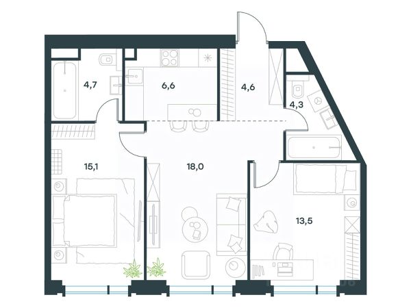 Цена указана с учётом скидки при 100%-й оплате, несубсидированной ипотеке, рассрочке (кроме программы "Рассрочка 0%"). В Академическом районе продаётся 3-комнатная квартира площадью 85.50 кв.м без отделки. Квартира расположена на 19-м этаже 19-этажного жилого комплекса бизнес-класса Левел Академическая (компания Level Group). Площади помещений определены кадастровым инженером по результатам обмеров. Отличная транспортная доступность: - 1 мин. пешком до станции метро "Академическая"; - 4 мин. на автомобиле до ТТК; - 8 мин. на автомобиле до Садового кольца; - 13 мин. на автомобиле до Кремля. Продуманный архитектурный проект: - современная архитектура от бюро UNK project; - высокие потолки в квартирах до 6,62 м; - окна в пол высотой 2,5-2,68 м с панорамным видом на МГУ, Москва-Сити и другие доминанты Москвы; - квартиры с моллированным остеклением - радиусные окна открывают увеличенный угол обзора; - более 20 вариантов планировочных решений; - уникальные квартиры с собственным патио и возможностью обустройства дровяного камина; - квартиры сдаются без отделки, что открывает свободу для создания интерьера по своему вкусу. Расположение: Камерный проект из 1 корпуса расположен тихом зеленом районе Москвы, в непосредственной близости к центру города. В округе построено 80 детских садов, 50 школ и 30 вузов, 7 из которых входят в топ100 вузов России: МГУ, МГИМО, РАНХиГС, МИСИС, РУДН, РЭУ им. Плеханова и РГУ нефти и газа им. Губкина. Этот район буквально утопает в зелени парков, начиная с уютного Академического в 6 минутах пешком и заканчивая одним из крупнейших в городе парком 50-летия Октября (12 минут на автомобиле). Общая площадь природных объектов в радиусе 2-6 км от дома - 476,5 га. Внутренняя инфраструктура: На территории жилого комплекса Левел Академическая откроется собственный торговый центр, а для отдыха жителей будут созданы общественные пространства: комфортное лобби с дизайнерской отделкой, окнами в пол и потолками высотой 4,5 м, а также две благоустроенные зоны - территория по периметру здания и пространство на стилобате. Во дворе на стилобате предусмотрены детская и спортивная площадки, коворкинг и лаунж-зона на открытом воздухе. Стилобат украсят скульптуры животных - жирафа, зайца и волка, которые станут ярким акцентом внутреннего двора жилого комплекса Левел Академическая, подчеркивая близость к музею Дарвина. Процент озеленения территории - 58%. Технологии и безопасность: Жителей жилого комплекса Левел Академическая не коснется ежегодное отключение горячей воды благодаря собственным центральным водонагревателям. Безопасность гарантирует круглосуточная охрана, безлимитный вайфай, круглосуточное видеонаблюдение. Удобное перемещение внутри комплекса будут обеспечивать 5 лифтов с доступом в паркинг с жилых этажей. п 3-комнатная квартира в новостройке рядом с метро Академическая.