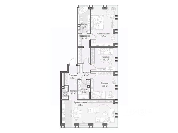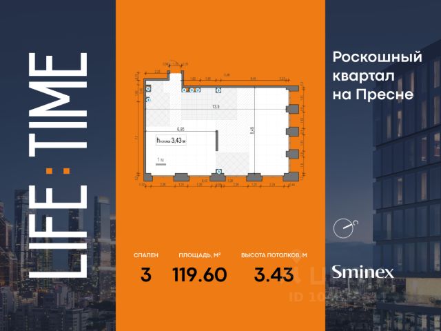 Просторная светлая квартира площадью 119,3 кв. м с окнами, выходящими на тихую улицу Сергея Макеева и на северную панораму города. Большое панорамное окно в с/у с возможностью открывания настежь улучшает видовые характеристики. Продуманная планировка позволяет разместить две мастер-спальни с отдельными санузлами и гардеробными и одной просторной спальней. Life Time - роскошный современный квартал на Пресне, в наиболее быстро растущем премиальном районе ЦАО. Его насыщенная инфраструктура и выгодное расположение дарят время для жизни. Вы больше не тратите его на дорогу или ожидание, при этом ни в чём себе не отказывая. На территории предусмотрено всё для комфортной жизни: • двор-парк площадью 1,8 гектара с прудом и фонтанами; • Clubhouse - инфраструктурный центр в отдельном здании с исчерпывающими возможностями для спорта, отдыха и досуга только для жителей; • спортивная инфраструктура на улице и в помещении, в том числе бассейн длиной 25 метров, хот-таб, хаммам, сауна, бьюти-зона; • клубная гостиная с террасой; • всё для развития и досуга детей любого возраста, в том числе детский сад и школа. Life Time находится в центре сложившегося премиального района, в окружении многочисленных парков. Удобная транспортная доступность и прямой выезд на Звенигородское шоссе позволяют без проблем добраться до Садового кольца и Москва-Сити. Архитектурный стиль квартала - роскошный минимализм. Дома десятилетиями будут выглядеть современно. Продам 3-комнатную квартиру в новостройке рядом с метро Беговая.
