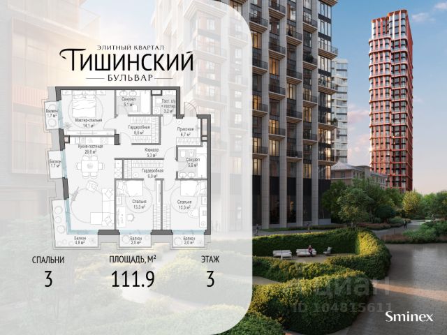 В продаже 3-комнатная квартира квартира в элитном квартале "Тишинский бульвар". Общая площадь квартиры - 112.90 кв.м. Этаж 12 из 14. Корпус Ивовый 6. "Тишинский бульвар" - тихий зелёный элитный квартал на Тишинке, в престижном и комфортном районе центра Москвы. В нём создан уникальный для элитного дома прогулочный бульвар в своём огромном парке 1,9 га. В парке оборудованы зоны для активного и тихого отдыха, крытые галереи, приватные зелёные комнаты, многофункциональная спортивная площадка, воркаут-зона, детская площадка, сухой фонтан, ручей. В пешей доступности Римско-католический кафедральный собор. Всего в полутора километрах от квартала находятся Патриаршие пруды - излюбленное место для летних прогулок, воскресных бранчей и романтических ужинов. Белая площадь расположена ещё ближе - на расстоянии 1,2 километра. Это точка концентрации деловой жизни и модных ресторанов. В "Тишинский бульваре" только для жителей и их гостей создан уникальный для элитного дома прогулочный бульвар в собственном огромном парке площадью 2,1 га, который занимает 70% территории квартала. Бульвар проходит через весь квартал и объединяет в общее пространство три двора: Кленовый, Рябиновый и Ивовый. В парке созданы крытые галереи и приватные зелёные комнаты для отдыха и медитаций в любую погоду. Насыщенное озеленение многолетними растениями с разными периодами цветения сохраняет территорию квартала красивой круглый год. В квартале насыщенная инфраструктура только для жителей, включая Clubhouse. Здесь оборудованы пространства для здорового образа жизни по стандарту FIT LAB: в парке - многофункциональная спортивная площадка, воркаут-зона, место для занятий йогой и медитации; бесплатный фитнес-клуб с бассейном. Для маленьких жителей доступны детская площадка и игровая комната по стандарту KIDS LAB. Дома оснащены самыми полными и лучшими системами. Продам 3-комнатную квартиру в новостройке рядом с метро Белорусская.