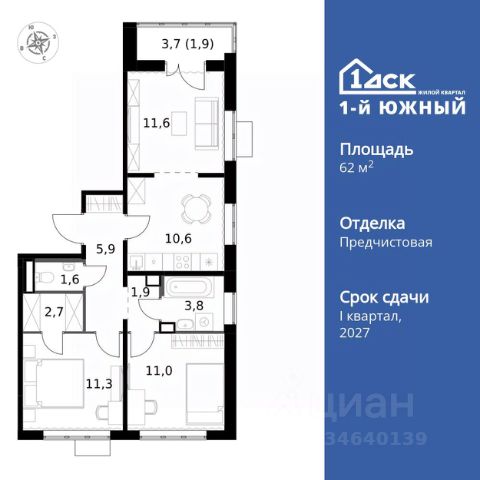 Прямая продажа от застройщика! Жилой Комплекс класса Комфорт Плюс. Продаётся 3-к квартира номер 559 общей площадью 62.8 кв.м. на 9-м этаже 24 этажного здания. Чистовая отделка. Цена с учётом скидки. Особенности квартиры: - МЦД-5 в пешей доступности - Квартал с южным садом - Свои 3 детских сада и 2 большие школы - Просторная спальня, в которой можно разместить большую кровать. - Угловая планировка - больше пространства для ваших идей. - Окно в ванной - натуральное освещение для уюта и комфорта. - Гостевой санузел - комфорт и удобство для ваших гостей. - Раздельный санузел - больше удобства для всех членов семьи. - Евроформат - просторное и удобное жилье с отличной планировкой. - Просторная мягкая зона - комфорт и уют для отдыха всей семьи. - Кухня-гостиная - идеальное пространство для встреч с близкими. - Возможность добавить спальное место - дополнительный комфорт для гостей. - Гардеробная - удобство для хранения и организации вещей. - Ниша под шкаф - компактное и удобное место для вещей. - Просторная лоджия - идеальное место для уютных вечеров. Информация о комплексе: Одно из преимуществ проектов 1- ДСК большие застекленные лоджии. Другое преимущество честный евро-формат. Во всем проекте предусмотрена система Умный дом. В состав устанавливаемого пакета устройств входит: WiFi реле для управления группами потребителей, беспроводной кран перекрытия с эл. приводом, беспроводной сенсор протечки, Яндекс Станция Мини. Его расположение можно назвать удачным за счет транспортной доступности и близости к природным объектам. По соседству лес, а в каждом дворе плодовые деревья. Весной квартал окутывает бело-розовое облако: это цветут яблони, груши, сливы. К августу в воздух наполняется ароматом созревших плодов. Зимой среди покрытых инеем деревьев протянулась лыжня. Транспортная доступность: - Общественный транспорт: Действующая ж/д станция Булатниково (в перспективе будущая МДЦ D5) в пешей доступности, всего 10-12 минут. - Личный автотранспорт: Удобный выезд на трассу М4-Дон в сторону Москвы и области 850 м, до МКАД - 1 км Внутренняя инфраструктура: Красивые продуманные подъезды - еще одно преимущество проекта 1-й Южный. Вход в сквозные подъезды есть и с улицы, и со двора. Благодаря сплошному остеклению в них всегда светло и уютно. Подъезды расположены на уровне земли, поэтому и молодым родителям с коляской, и жильцам с ограниченными возможностями вход и выход неудобств не доставят. В помещении предусмотрено место под стойку ресепшен с выводом инженерных сетей. Если жильцы решат на общем собрании, что необходим охранник или консьерж, организовать для них рабочее место можно быстро и с минимальными затратами. В подъездах предусмотрены уборные для детей и взрослых. Колясочные в каждом подъезде позволяют поддерживать порядок и чистоту на этажах. На случай прогулки с четвероногим питомцем в непогоду в подъездах устроены лапомойки. Во дворах и на общественных территориях 1-ого Южного столько всего интересного для юн