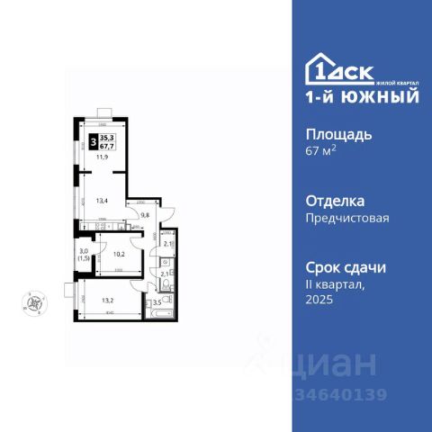 Прямая продажа от застройщика! Жилой Комплекс класса Комфорт Плюс. Продаётся 3-к квартира номер 247 общей площадью 67.4 кв.м. на 11-м этаже 25 этажного здания. Отделка Whitebox. Цена с учётом скидки. Особенности квартиры: - МЦД-5 в пешей доступности - Квартал с южным садом - Свои 3 детских сада и 2 большие школы - Угловая планировка - больше пространства для ваших идей. - Гостевой санузел - комфорт и удобство для ваших гостей. - Евроформат - просторное и удобное жилье с отличной планировкой. - Просторная мягкая зона - комфорт и уют для отдыха всей семьи. - Кухня-гостиная - идеальное пространство для встреч с близкими. - Возможность добавить спальное место - дополнительный комфорт для гостей. - Гардеробная - удобство для хранения и организации вещей. - Ниша под шкаф - компактное и удобное место для вещей. - Лоджия - уютное место для отдыха и тишины. Квартира с предчистовой отделкой (White box). Вам не придется заниматься черновыми и трудоёмкими работы, а чистовую отделку и дизайн - сделайте на свой вкус. Информация о комплексе: Одно из преимуществ проектов 1- ДСК большие застекленные лоджии. Другое преимущество честный евро-формат. Во всем проекте предусмотрена система Умный дом. В состав устанавливаемого пакета устройств входит: WiFi реле для управления группами потребителей, беспроводной кран перекрытия с эл. приводом, беспроводной сенсор протечки, Яндекс Станция Мини. Его расположение можно назвать удачным за счет транспортной доступности и близости к природным объектам. По соседству лес, а в каждом дворе плодовые деревья. Весной квартал окутывает бело-розовое облако: это цветут яблони, груши, сливы. К августу в воздух наполняется ароматом созревших плодов. Зимой среди покрытых инеем деревьев протянулась лыжня. Транспортная доступность: - Общественный транспорт: Действующая ж/д станция Булатниково (в перспективе будущая МДЦ D5) в пешей доступности, всего 10-12 минут. - Личный автотранспорт: Удобный выезд на трассу М4-Дон в сторону Москвы и области 850 м, до МКАД - 1 км Внутренняя инфраструктура: Красивые продуманные подъезды - еще одно преимущество проекта 1-й Южный. Вход в сквозные подъезды есть и с улицы, и со двора. Благодаря сплошному остеклению в них всегда светло и уютно. Подъезды расположены на уровне земли, поэтому и молодым родителям с коляской, и жильцам с ограниченными возможностями вход и выход неудобств не доставят. В помещении предусмотрено место под стойку ресепшен с выводом инженерных сетей. Если жильцы решат на общем собрании, что необходим охранник или консьерж, организовать для них рабочее место можно быстро и с минимальными затратами. В подъездах предусмотрены уборные для детей и взрослых. Колясочные в каждом подъезде позволяют поддерживать порядок и чистоту на этажах. На случай прогулки с четвероногим питомцем в непогоду в подъездах устроены лапомойки. Во дворах и на общественных территориях 1-ого Южного столько всего интересного для юных обитателей. Собственные 3 детских сада и